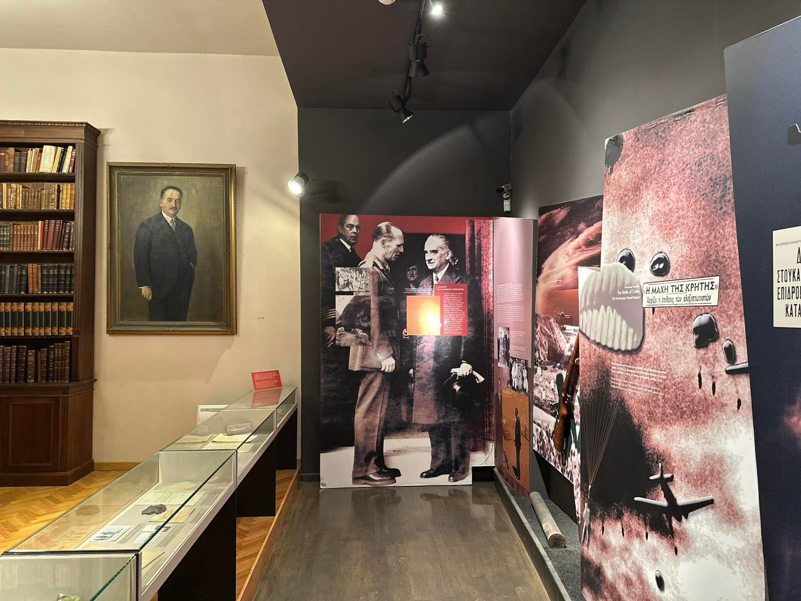 Σημαντική θέση κατέχει η ενότητα αφιερωμένη στον Εμμανουήλ Τσουδερό, τον Κρητικό τραπεζίτη και πολιτικό που υπηρέτησε ως Πρωθυπουργός της Ελλάδας κατά τη Μάχη της Κρήτης και αργότερα στην εξόριστη κυβέρνηση της Μέσης Ανατολής. Το γραφείο του, τα βιβλία, οι χειρόγραφες σημειώσεις, αλλά και προσωπικά του αντικείμενα συνθέτουν την εικόνα ενός ηγέτη με ψυχραιμία και όραμα — ενός ανθρώπου που κράτησε σταθερό το τιμόνι της χώρας μέσα στην καταιγίδα του πολέμου.