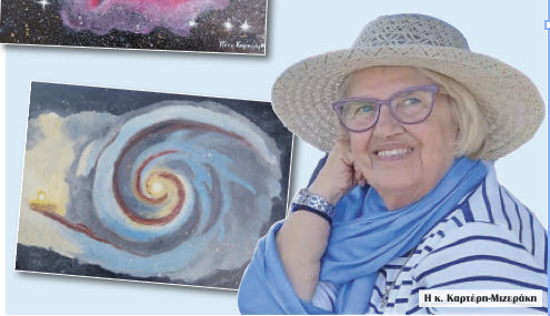 «Η στενή μου σχέση-σημειώνει η ζωγράφος- με τον ουρανό και τ’ αστέρια ξεκινά από τα παιδικά μου χρόνια, τότε που άφηνα την μικρή πόλη της Σητείας και πήγαινα στο χωριό. Εκεί που δεν υπήρχε ηλεκτρικό φως, όμως υπήρχε ένας ουρανός γεμάτος με εκατομμύρια αστέρια να τρεμοσβήνουν και να με αφήνουν εκστατική.