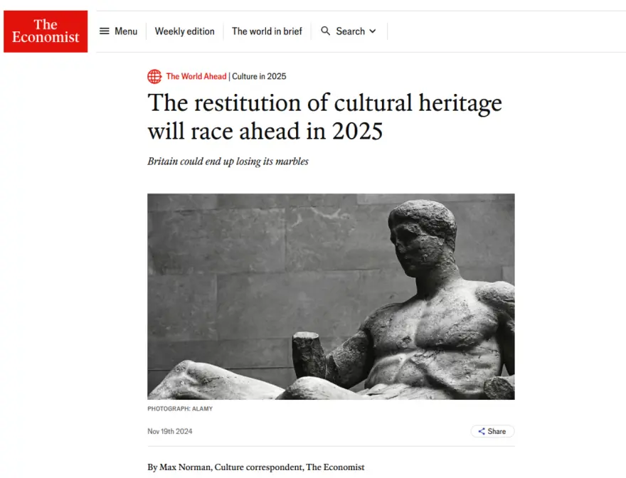 Δεν είναι τυχαίο ότι το περιοδικό επιμένει στο δίκαιο αίτημα της Ελλάδας, επικαλούμενο παραδείγματα πολλών άλλων μουσείων και κρατών που προέβησαν σε ανάλογες ενέργειες, υποστηρίζοντας ότι αυτό προτάσσει η νέα πολιτική των μουσείων παγκοσμίως. Εφόσον όλοι συμφωνήσουν και βρεθεί μια κοινή φόρμουλα, κάτι που, σύμφωνα με τον «Economist» είναι πιθανό να συμβεί μέσα στον επόμενο χρόνο, τότε θα συγκεκριμενοποιηθούν οι όροι της ανταλλαγής στον βαθμό που οι θησαυροί που προτείνουμε εμείς να φιλοξενηθούν από το μουσείο είναι, μάλλον, διαφορετικοί από αυτούς που ζητούν οι Βρετανοί. Και επειδή ο διάβολος βρίσκεται, πάντα, στις λεπτομέρειες, είναι δύσκολο να απαντήσει κανείς τι θα συμβεί τελικά αναφορικά με την κυριότητα των Γλυπτών -μαρμάρων κατά τους Βρετανούς- εφόσον ο μακροχρόνιος δανεισμός δεν μοιάζει να λύνει το θέμα της ιδιοκτησίας.