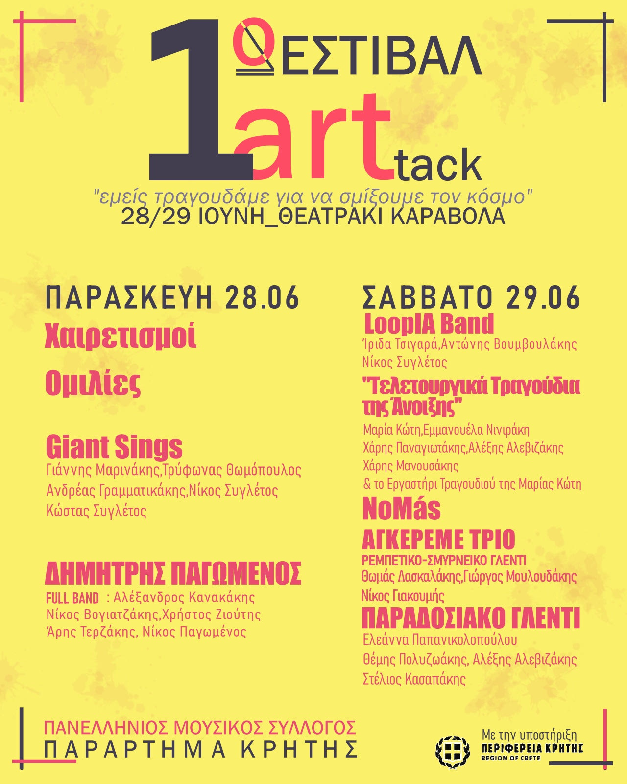 -Το 1ο Φεστιβάλ ArtAttack του συλλόγου κλείνει με Παραδοσιακό Γλέντι με τους Θέμη Πολυζωάκη, Ελεάννα Παπανικολοπούλου, Στέλιο Κασαπάκη και Αλέξη Αλεβιζάκη