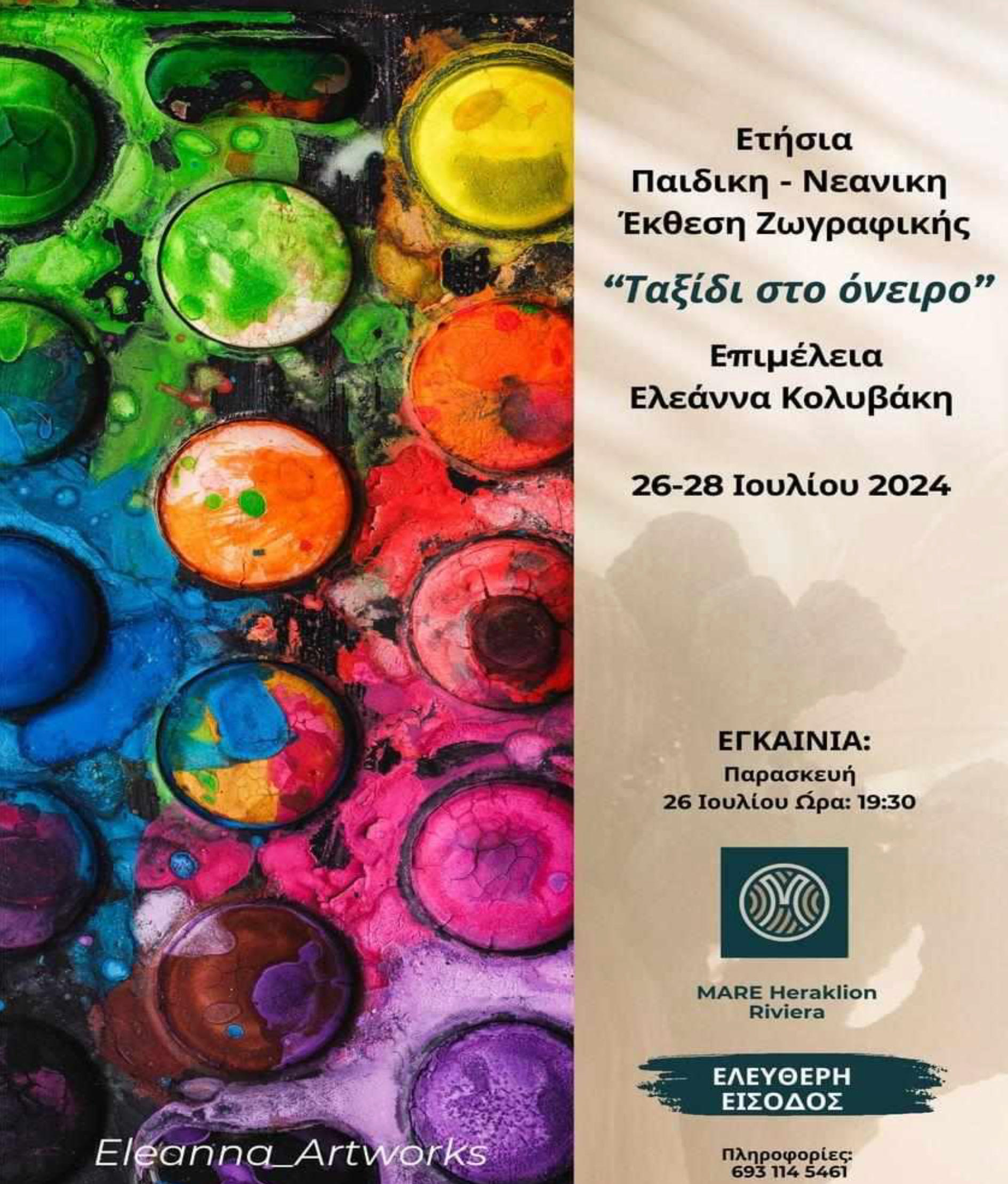 διάστημα 26 – 28 Ιουλίου 2024, στο χώρο του «Mare Heraklion Riviera» στο Ηράκλειο Κρήτης. Πρόκειται για 400 επιλεγμένα έργα ζωγραφικής, 70 μαθητών και μαθητριών, που έχουν εκπονηθεί