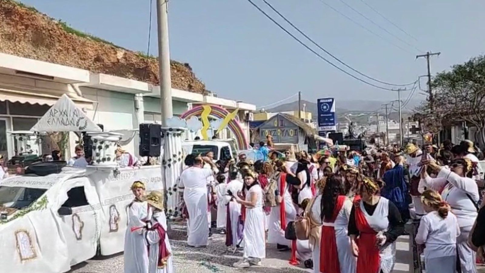 Λίγο πριν τη 1 το μεσημέρι, μικροί και μεγάλοι συγκεντρώθηκαν στο κέντρο της περιοχής και πήραν την… θέση τους στα άρματα και στις ομάδες που άνηκαν για να ξεφαντώσουν στους ρυθμούς της Αποκριάς.
