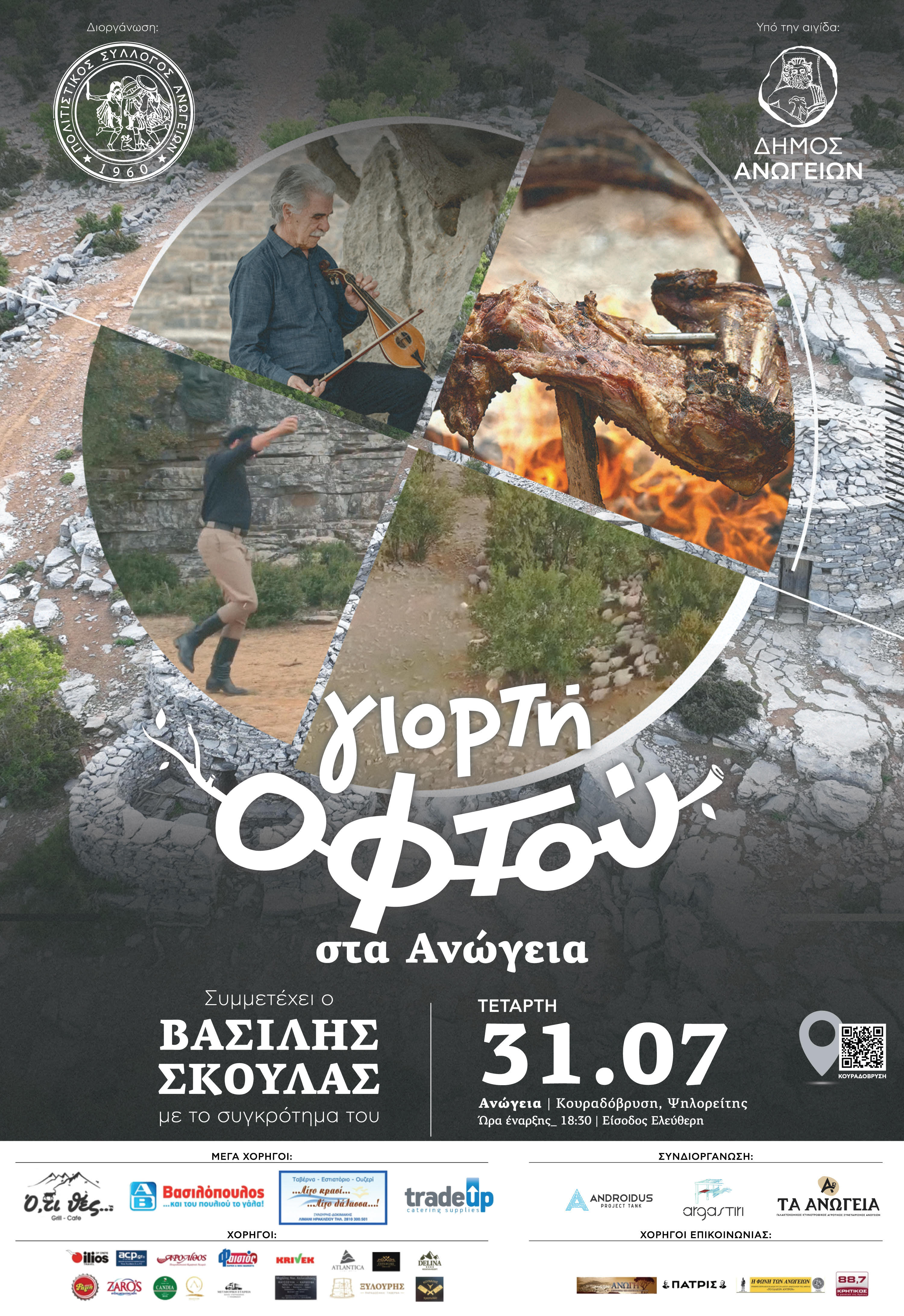 Οι επισκέπτες θα έχουν την ευκαιρία να δοκιμάσουν αυθεντικό οφτό, μαγειρεμένο με τον παραδοσιακό Ανωγειανό τρόπο, συνοδευόμενο από τοπικά προϊόντα.