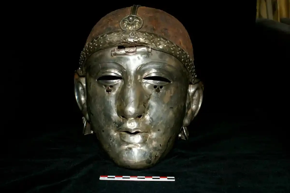 Μάσκα προσώπου που πιστεύεται ότι ανήκει σε μέλος της βασιλικής οικογένειας, η οποία ανακαλύφθηκε στο νεκροταφείο Abu Saboun στη Χομς (Έμεσα). Φωτογραφία: Shedet 2026