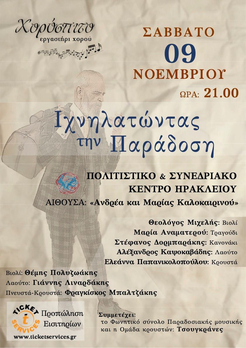 Το Εργαστήρι Χορού – Χορόσπιτο, παρουσιάζει την παράσταση “Ιχνηλατώντας την Παράδοση”, το Σάββατο 9 Νοεμβρίου στο Πολιτιστικό Κέντρο Ηρακλείου στις 21.00.