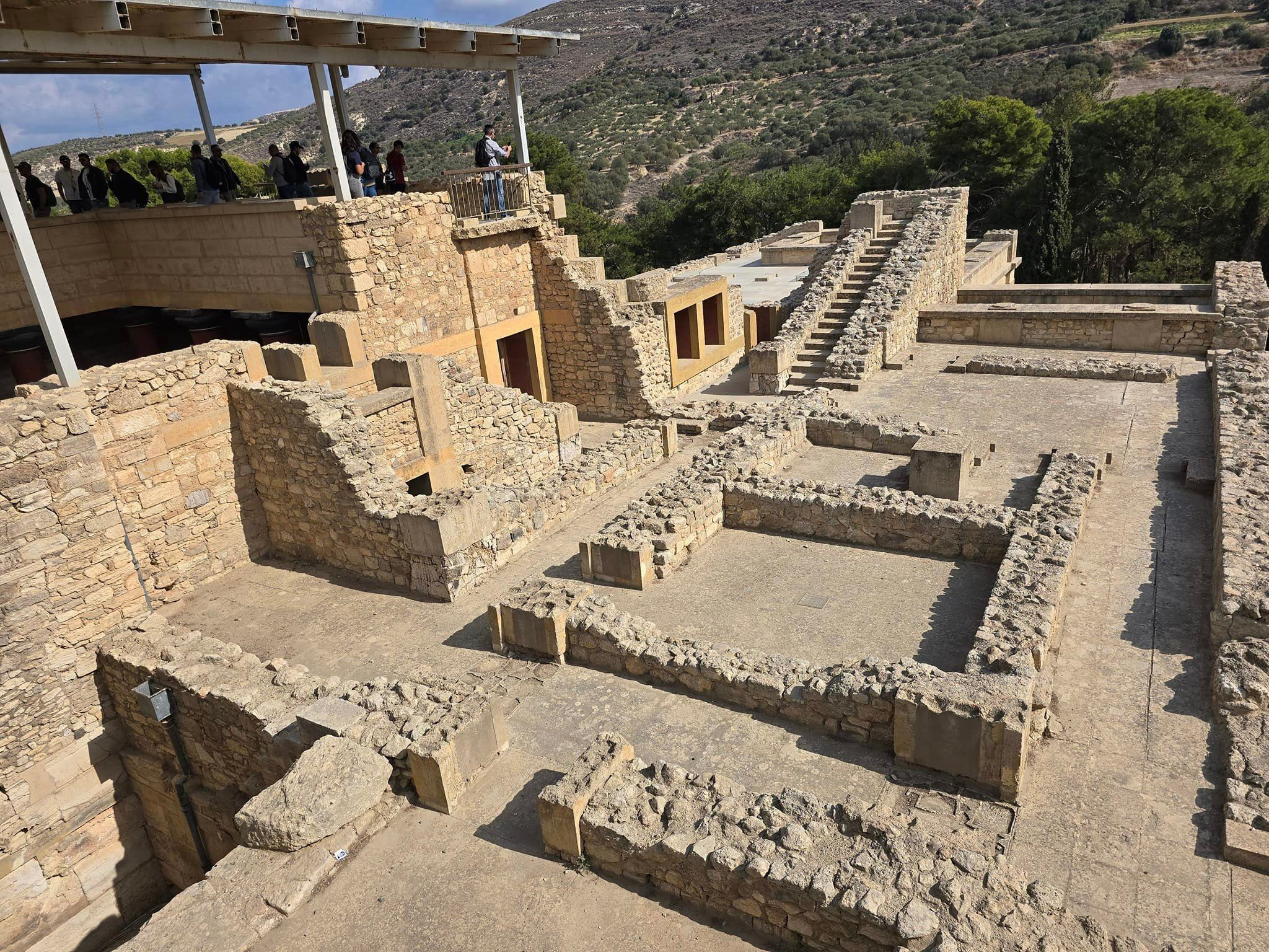 Η Αθηνά Σφακάκη ξετύλιξε το κουβάρι της ξενάγησης μιλώντας για τους ανθρώπους που ξεκίνησαν αλλά και συνέχισαν τις ανασκαφές στο ανάκτορο, με ιδιαίτερη αναφορά στον Μίνωα Καλοκαιρινό και τον Άρθουρ Έβανς και συνέχισε μιλώντας για την μακραίωνη ιστορία του ανακτόρου και τους χώρους του ανακτόρου όπως την αίθουσα του θρόνου και τους εσωτερικούς χώρους μεταξύ των οποίων περιλαμβάνονται χώροι υποδοχής και διαμονής καθώς και αποθηκευτικοί χώροι με μοναδικές τοιχογραφίες.