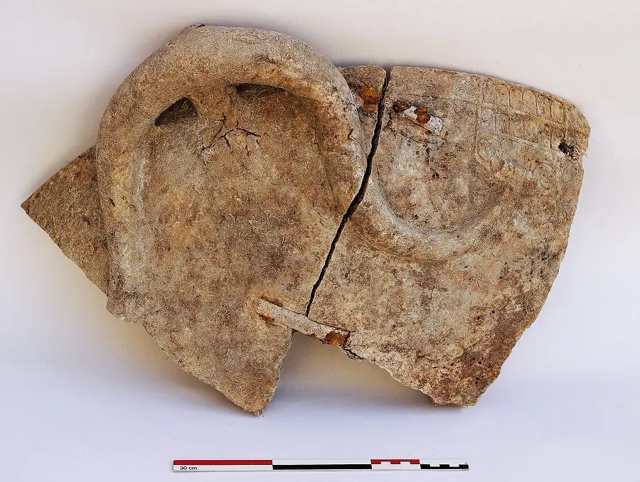 Μαζί με το θραύσμα που ανακαλύφθηκε το 2022, το εντυπωσιακό σκεύος μπορεί πλέον να αποκατασταθεί σχεδόν στο σύνολό του. Σημαντικό εύρημα της φετινής ανασκαφής είναι χάλκινο έλασμα που πιθανώς ήταν ανηρτημένο σε τοίχο του ναού. Η απεικονιστική διαγνωστική εξέταση του αντικειμένου φανέρωσε ότι η μία όψη της χάλκινης πλάκας διασώζει μεγάλη επιγραφή, η οποία αναμένεται ότι θα αποκαλυφθεί πλήρως κατά τη συντήρησή της στο εργαστήριο της Εφορείας Αρχαιοτήτων Ηλείας.