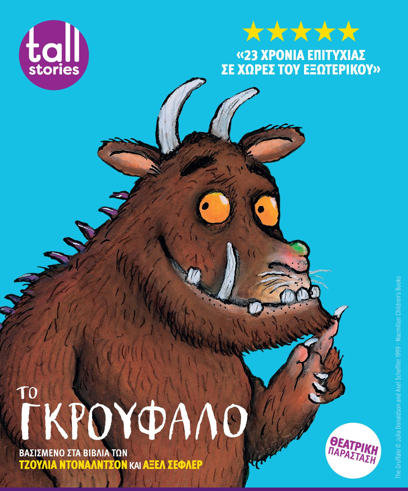 Η θεατρική παράσταση «Το Γκρούφαλο», βασισμένη στα ομώνυμα βιβλία των Τζούλια Ντόλαντσον και Άξελ Σέφλερ,παρουσιάζεται ,στις 9 το βράδυ,στο Κηποθέατρο «Νίκος Καζαντζάκης».