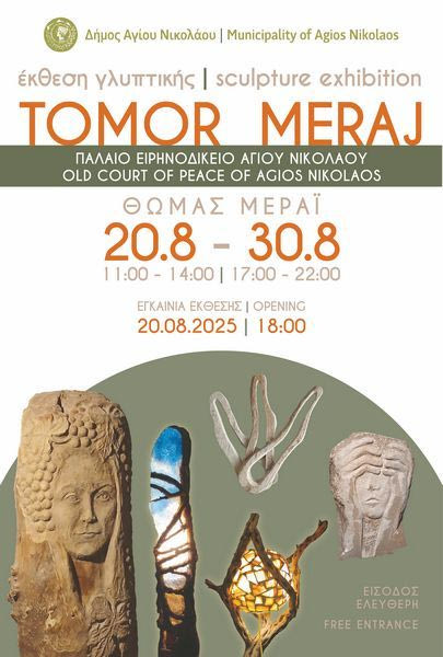 Μέχρι τις 30 Αυγούστου 2025 φιλοξενείται στο Ειρηνοδικείο Αγίου Νικολάου, η έκθεσης γλυπτικής του Tomor Meraj .