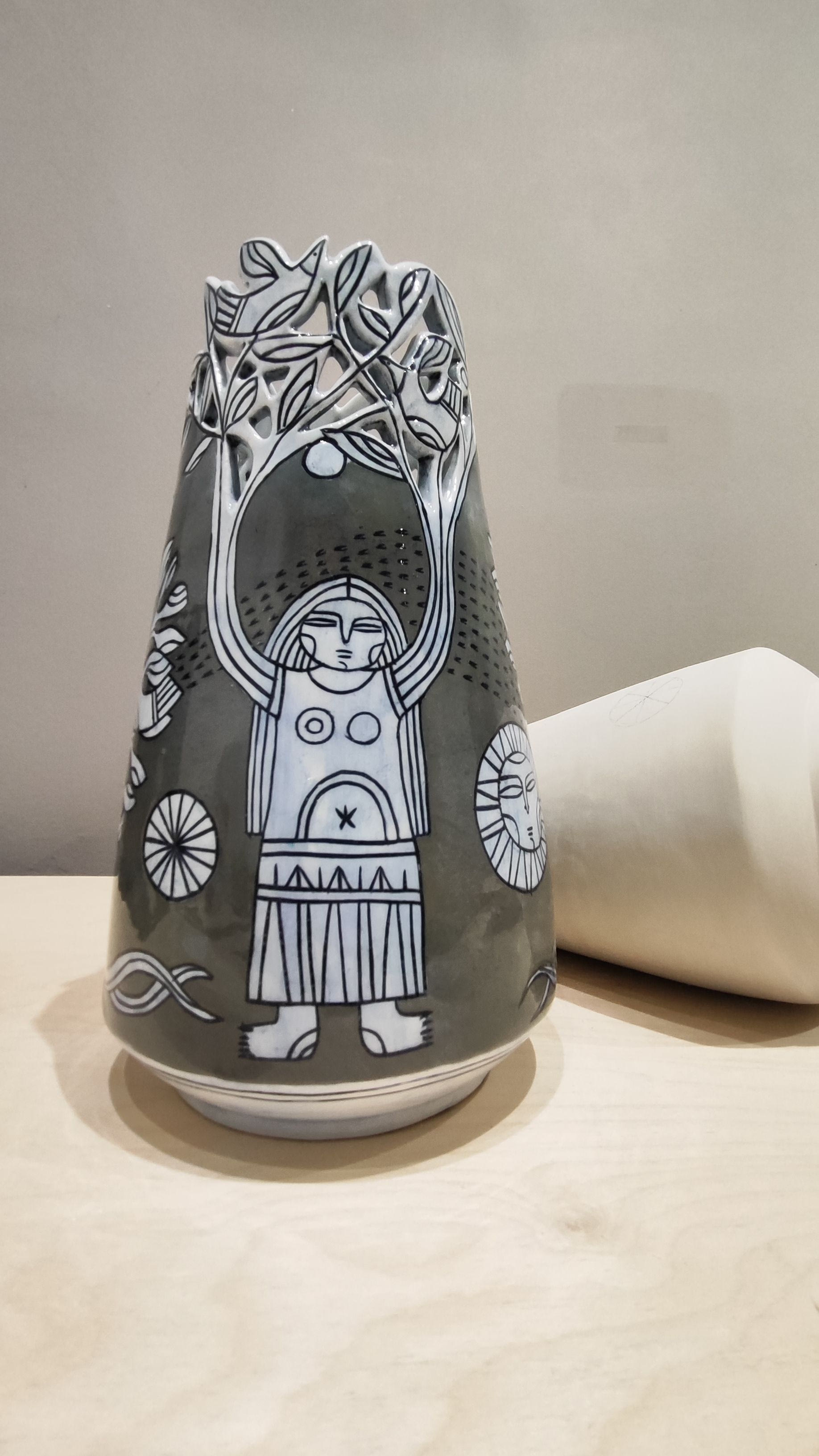 Κάποιες στιγμές αναρωτιέσαι πώς μπορεί να έγινε ένα τέτοιο έργο μόνο από πηλό. Κι όμως, όπως είχε πει στην «Π» και στην Αντωνία Κουτσάκη, ενόψει της έκθεσης, η Ελληνογερμανίδα κεραμίστρια Κορίνα Ντόερ, πρόεδρος του Συλλόγου «Κεραμών», «στη σύγχρονη εποχή, με τη βοήθεια της τεχνολογίας, οι δυνατότητες έχουν πολλαπλασιαστεί. Πλέον μπορούν να γίνουν πραγματικά “θαύματα” με τον πηλό -από γλυπτικές εγκαταστάσεις μέχρι λειτουργικά αντικείμενα υψηλής αισθητικής».