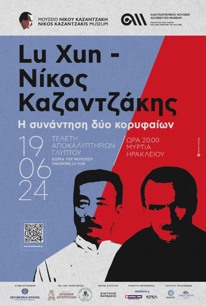 Η τελετή των αποκαλυπτηρίων της δωρεάς του Μουσείου Lu Xun προς το Μουσείο Νίκου Καζαντζάκη θα λάβει χώρα την Τετάρτη 19 Ιουνίου 2024, ώρα 20.00 στην πλατεία του Μουσείου Νίκου Καζαντζάκη στη Μυρτιά.