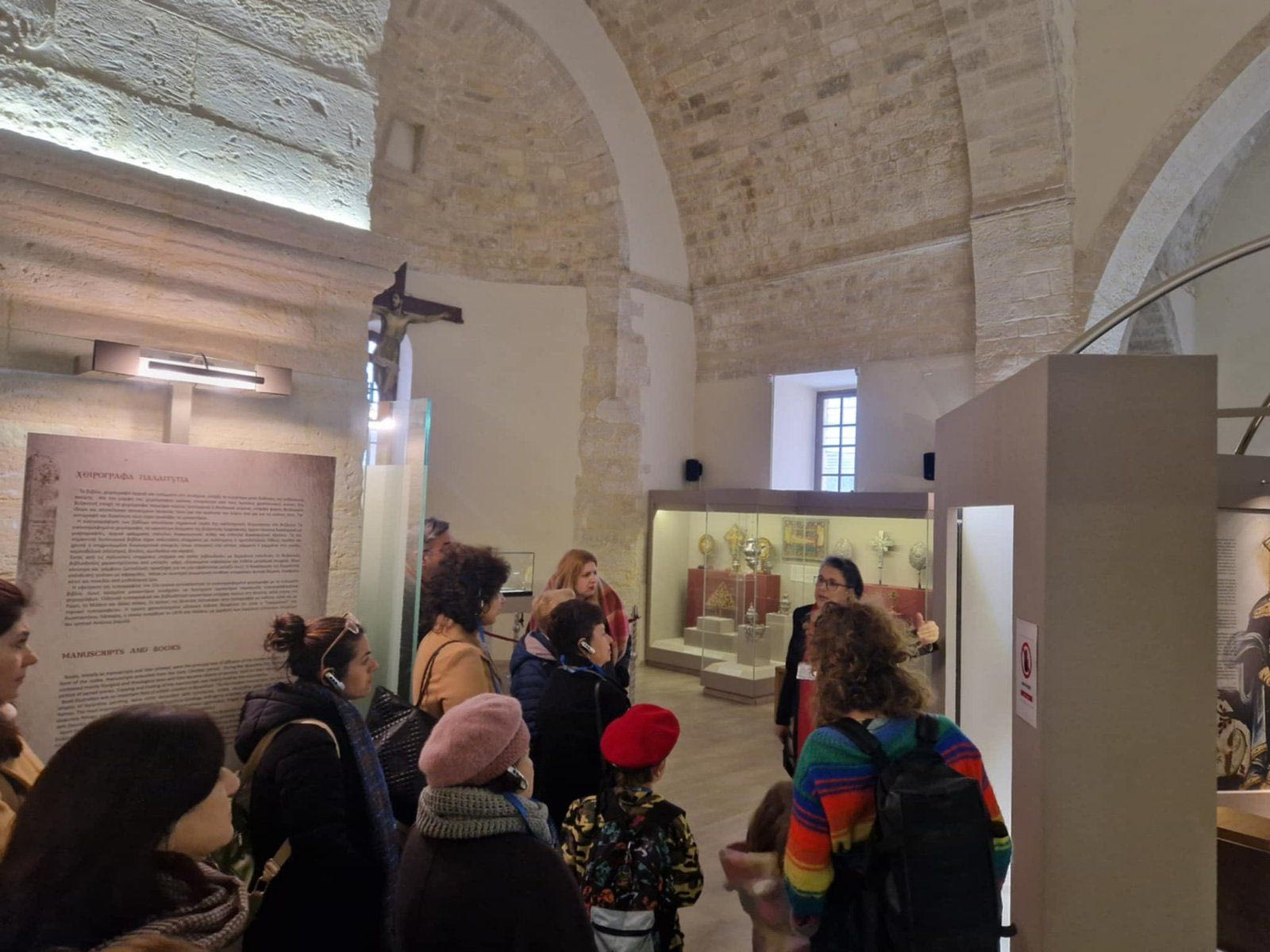 Επίσης είχαν την ευκαιρία να ενημερωθούν από την Αθηνά Σφακάκη για την ιστορία της Μονής από τα χρόνια του Χάνδακα έως και σήμερα, να θαυμάσουν την αρχιτεκτονική της και ιδιαίτερα τον εκπληκτικό θόλο της αλλά κυρίως να θαυμάσουν τις καταπληκτικές εικόνες μεγάλων αγιογράφων με κορυφαίο το Μιχαήλ Δαμασκηνό.