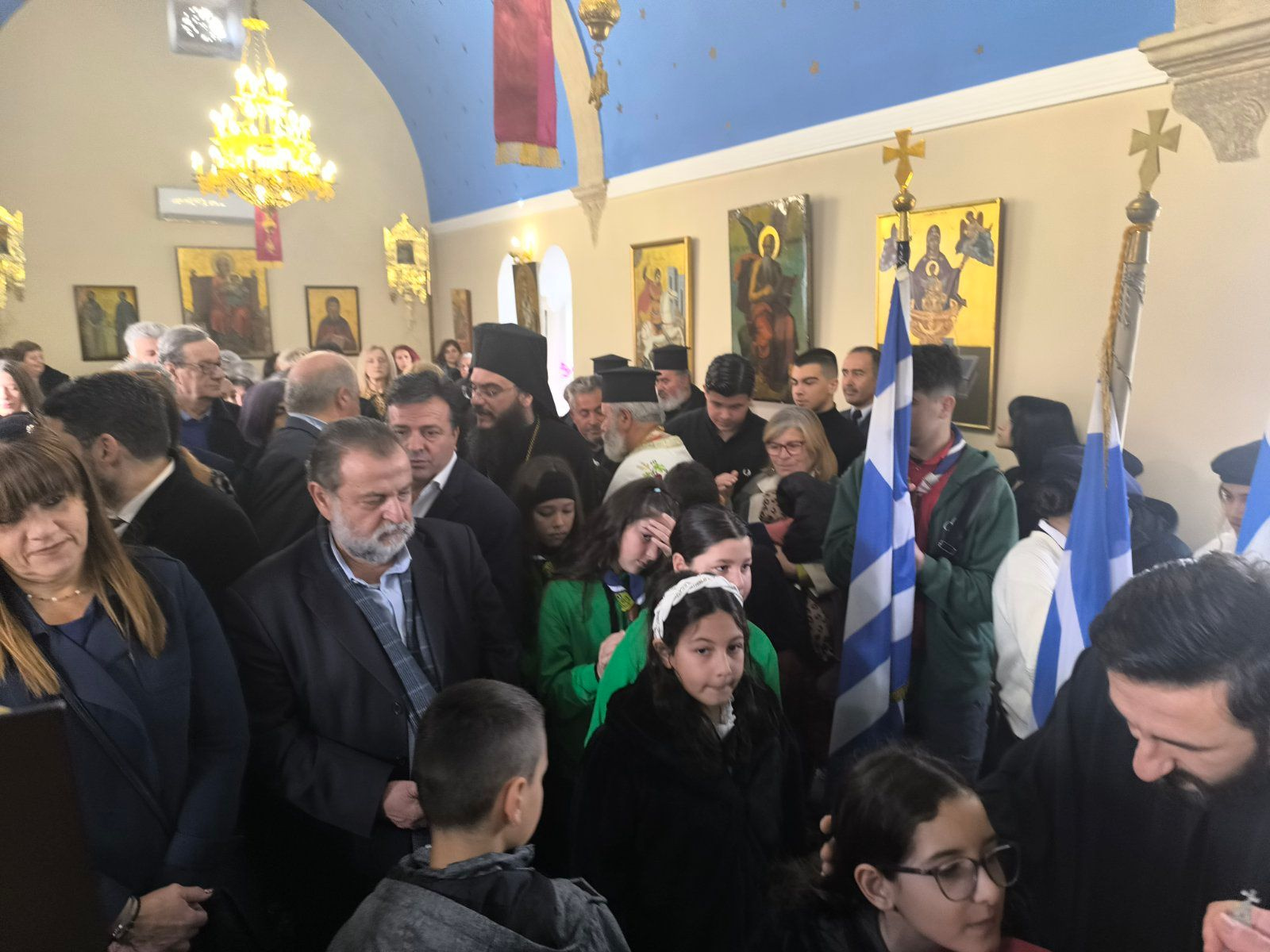Το πρωί του Σαββάτου 17 Ιανουαρίου, τελέστηκε πανηγυρική Θεία Λειτουργία, ιερουργούντος του Σεβασμιωτάτου Μητροπολίτη Αρκαλοχωρίου, Καστελλίου και Βιάννου κ.κ. Ανδρέα, πλαισιωμένου από τον Προϊστάμενο της Ενορίας Αρχιμανδρίτη Ιερόθεο Χιώτη και κληρικούς της ευρύτερης περιοχής. Παρόντες ήταν μεταξύ άλλων, ο Δήμαρχος Μινώα Πεδιάδας Βασίλης Κεγκέρογλου, ο Αντιπεριφερειάρχης Νίκος Συριγωνάκης, ο Περιφερειακός Σύμβουλος Γιώργος Παπαδάκης, η Πρόεδρος της Δημοτικής Κοινότητας Καστελλίου Μαρία Σκουλούδη, Αντιδήμαρχοι, Δημοτικοί Σύμβουλοι και εκπρόσωποι της Δημοτικής Αρχής, εκπρόσωποι θεσμικών, εκπαιδευτικών, πολιτιστικών και άλλων φορέων του τόπου, εκπρόσωποι της 133 ΣΜ, της Αστυνομίας, της Πυροσβεστικής, οι σημαιοφόροι και παραστάτες των σχολείων του Καστελλίου και του 7ου Συστήματος Αεροπροσκόπων Καστελλίου κ.α.