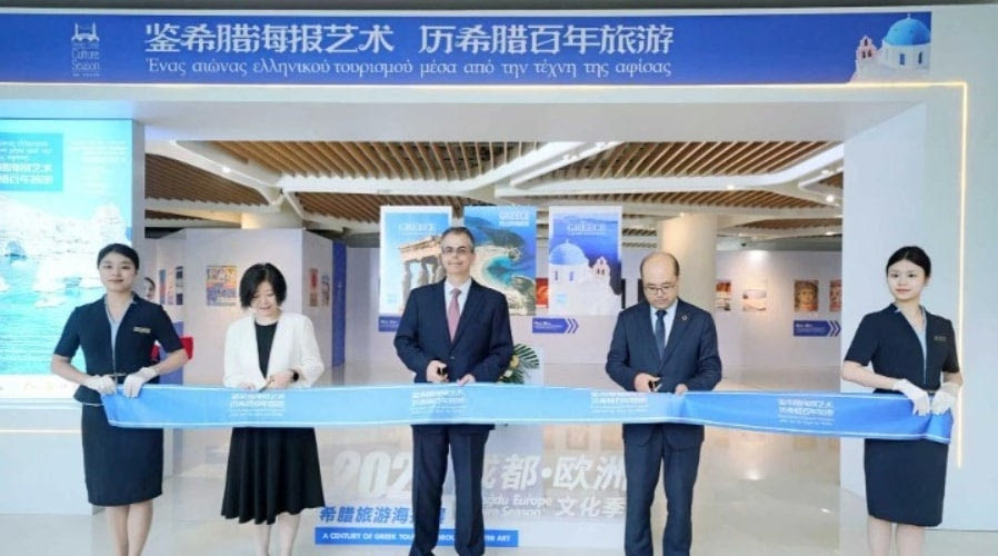 Την Ελλάδα του τουρισμού και του πολιτισμού θα μπορούν να απολαύσουν εκατομμύρια Κινέζοι που επισκέπτονται την έκθεση με θέμα: “ H Ελλάδα μέσα από την Τέχνη της τουριστικής αφίσας” η οποία εγκαινιάστηκε χθες το απόγευμα, 20 Μαΐου, στην πόλη Τσενγκντού της Κίνας, σε μια λαμπρή τελετή στην οποία παρέστησαν ο Πρέσβης της Ελλάδος στην Κίνα, Δρ. Ευγένιος Καλπύρης, ο αναπληρωτής γενικός διευθυντής του Γραφείου Εξωτερικών Υποθέσεων της Τσεγκντού, Χουάνγκ Τάο, Κινέζοι αξιωματούχοι, ξένοι διπλωμάτες και πλήθος κόσμου.
