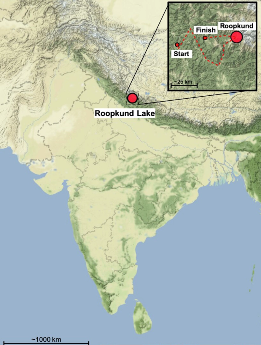 Το όνομα Roopkund (ή Roop Kund), πιθανότατα δεν λέει τίποτα σε κανέναν. Η αλήθεια είναι πως ούτε και σε μας ήταν γνωστό. Διαβάζοντας τυχαία ένα άρθρο μάθαμε ότι πρόκειται για μια λίμνη στα Ιμαλάια, σε υψόμετρο μεγαλύτερο από 5.000 μέτρα η οποία ανήκει στην Ινδία. Και πάλι όμως αυτό δεν αποτελεί αξιοσημείωτο γεγονός. Στη συνέχεια του άρθρου όμως διαβάσαμε ότι κατά το χρονικό διάστημα (1-2 μήνες κάθε έτος) που αυτή δεν είναι παγωμένη γίνονται ορατοί στον βυθό της λίμνης ή στις άκρες της, περίπου 600-800 σκελετοί ανθρώπων. Το εντυπωσιακότερο όλων είναι ότι ανάμεσά τους υπάρχουν τουλάχιστον 14 σκελετοί ατόμων που κατάγονται από την Ελλάδα και ειδικότερα από την Κρήτη!