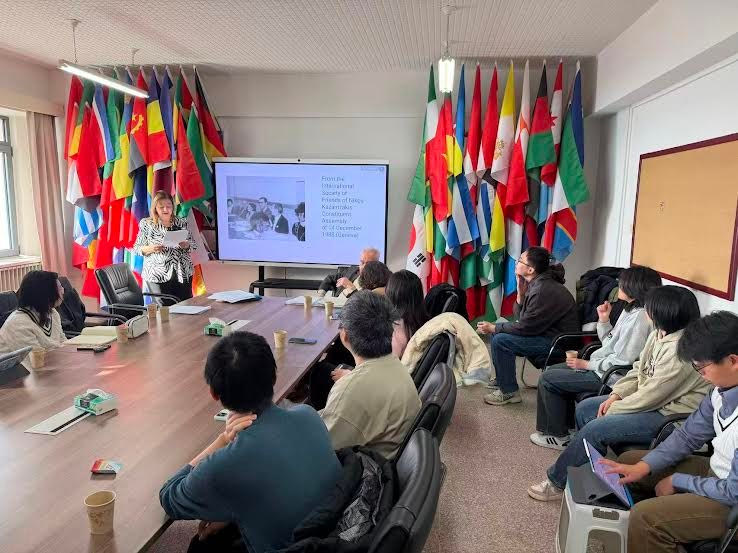 Στο Πανεπιστήμιο Ξένων Σπουδών του Πεκίνου (BFSU), η καθηγήτρια κυρία Que Jianrong, με τους φοιτητές της, ετοίμασαν ένα χειροποίητο δώρο για την ΔΕΦΝΚ. Ήταν μια έκπληξη για όλους, όπως ήταν έκπληξη και τα υπέροχα ελληνικά τους.