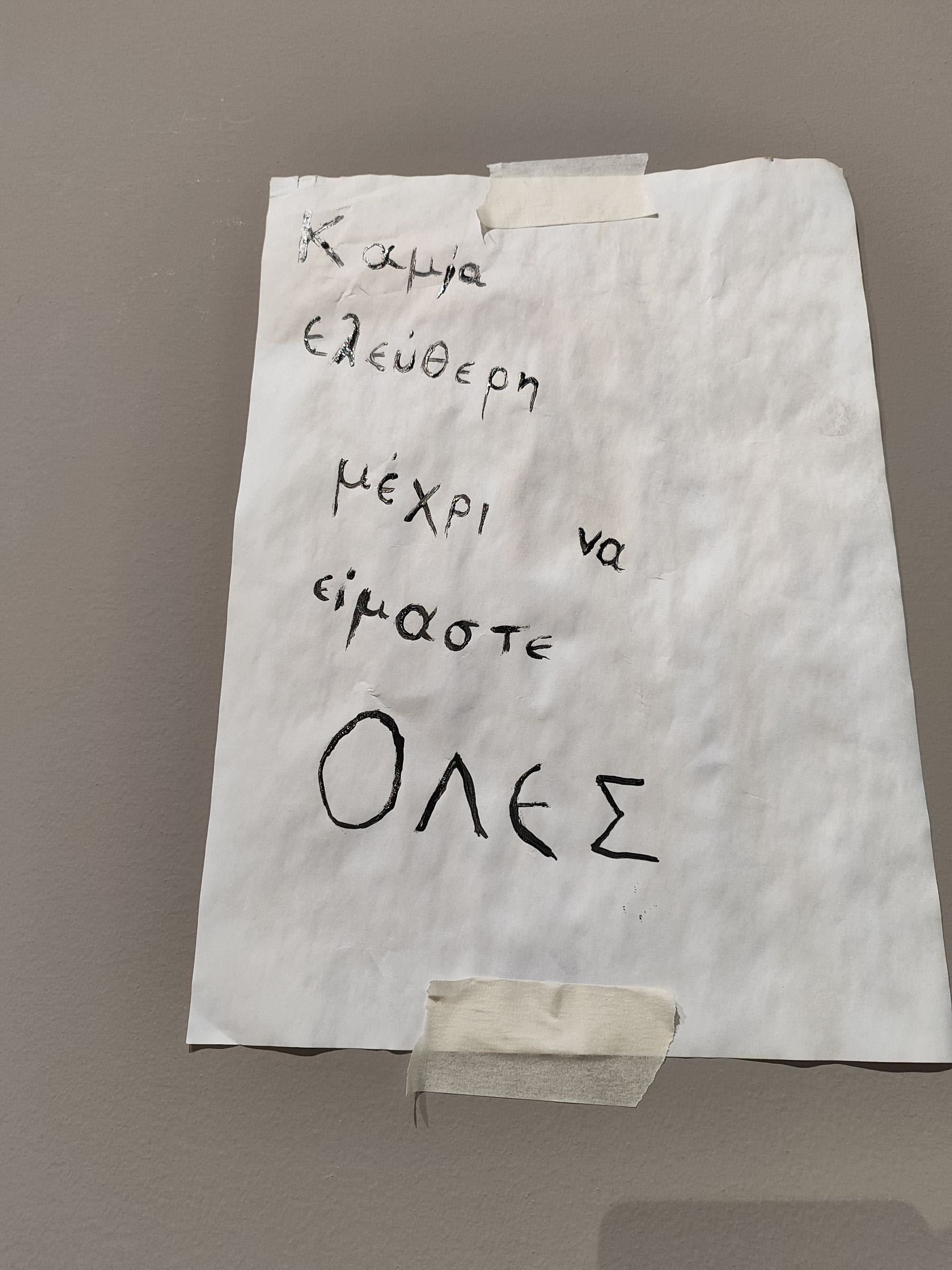 Οι επισκέπτριες και οι επισκέπτες της έκθεσης, αφού ολοκληρώσουν την περιήγησή τους, να γράψουν οι ίδιοι ένα μήνυμα, σχετικά με τι τους «άφησε» η έκθεση.