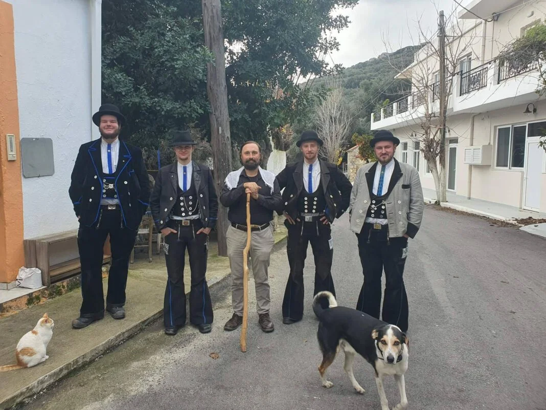 Πρόκειται για μία ιδιαίτερη ομάδα νέων ανθρώπων ντυμένων με παραδοσιακές ενδυμασίες από περιοχές της Γερμανίας γεγονός που τράβηξε το ενδιαφέρον καθώς και την περιέργεια τον κατοίκων και επισκεπτών ξυπνώντας, όπως επισημαίνει ο κ. Κουκουτσάκης, μνήμες από μια άλλη εποχή.