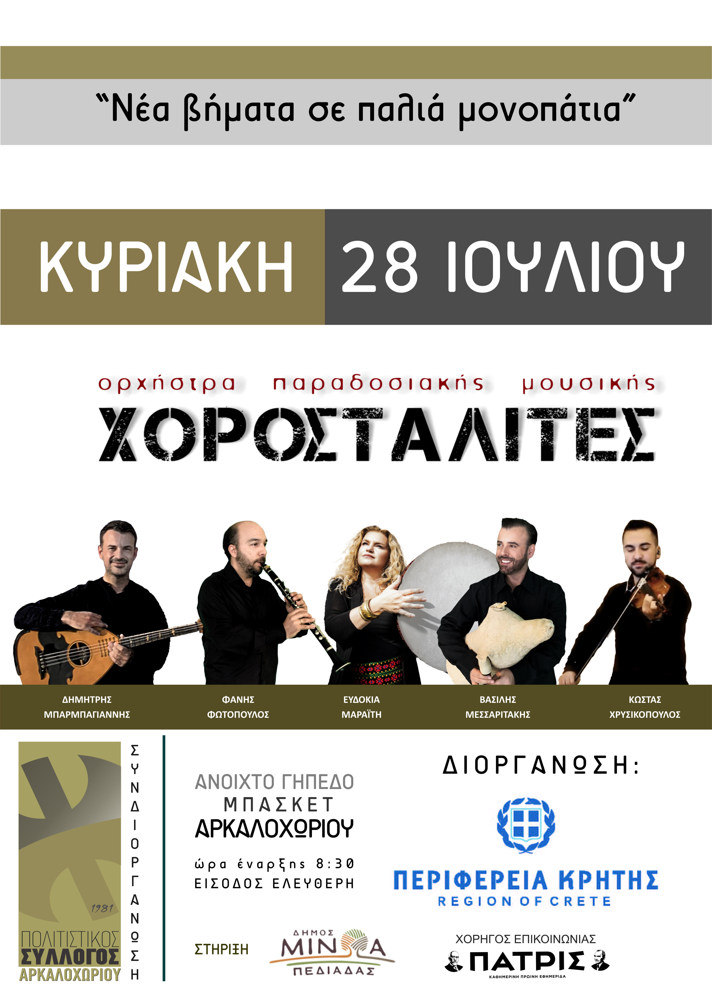 Οι «Χοροσταλίτες» παρουσιάζουν δύο συναυλίες με τίτλο «Νέα βήματα σε παλιά μονοπάτια» και με τη στήριξη της Περιφέρειας Κρήτης και ελεύθερη είσοδο.
