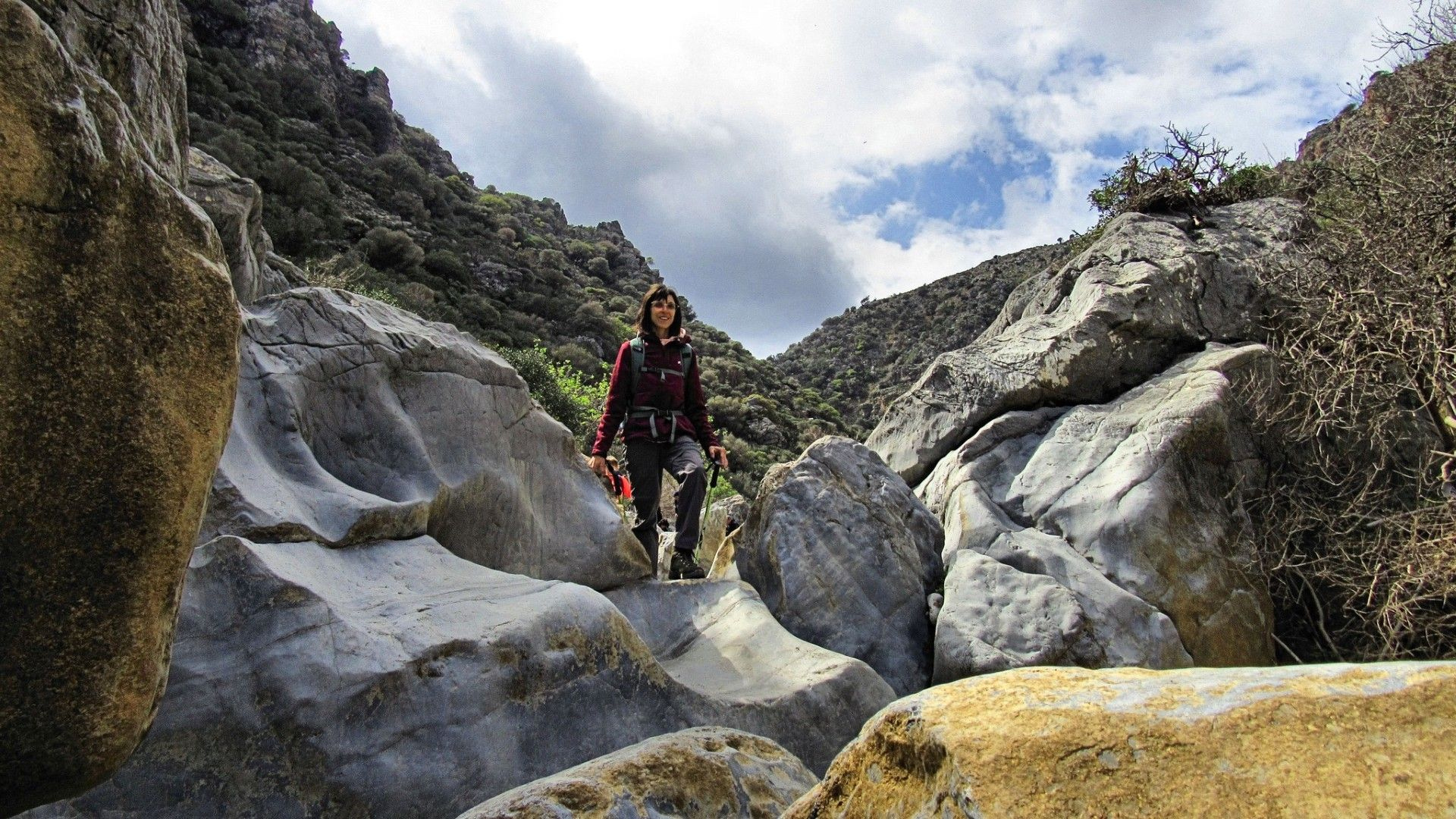 Πιο κάτω τα κάθετα πρανή υψώνονται θεόρατα και κατακόκκινα με τις σπηλαιώσεις τους, όπου φωλεύουν δεκάδες όρνια! Ο Μαρίνος, που ξέρει τα ονόματα και τις συνήθειες κάθε ζωντανού, εδώ έξω θα τα φωνάξει για το χατίρι μας κι αυτά δεν θα αργήσουν να ανταποκριθούν. Κάπως έτσι γέμισε ο ουρανός πετούμενα προς τέρψη των περιπατητών!
