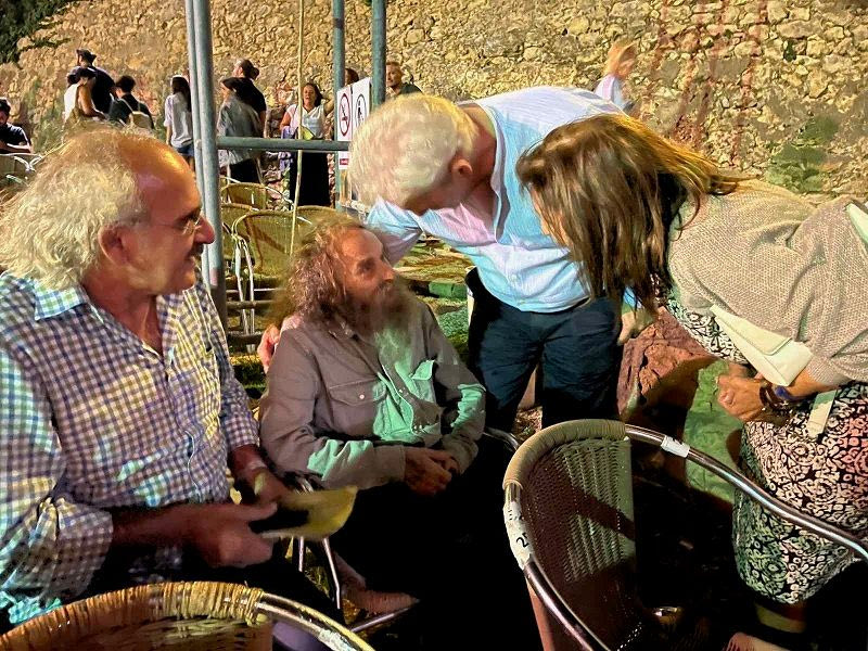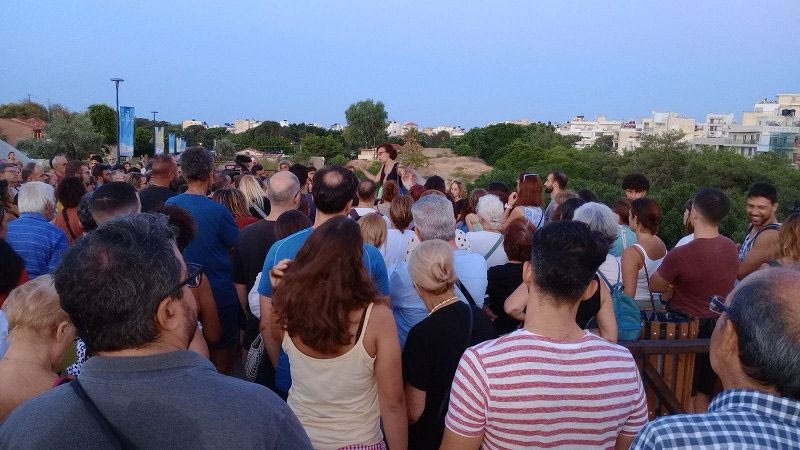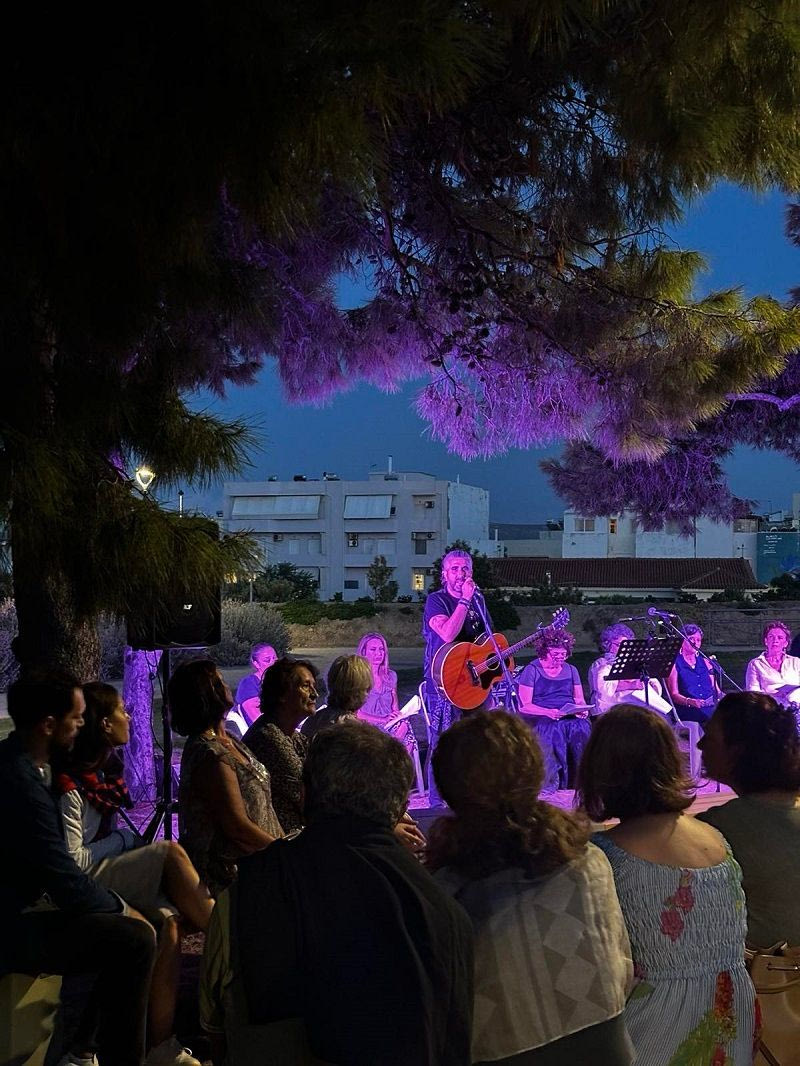 Την ίδια ώρα οι θεατές προσερχόντουσαν στο Κηποθέατρο «Μάνος Χατζιδάκις» για να παρακολουθήσουν την παράσταση «Χάρολντ και Μωντ» από την Θεατρική Ομάδα Δημοσιογράφων Ηρακλείου της ΕΣΗΕΠΗΝ.