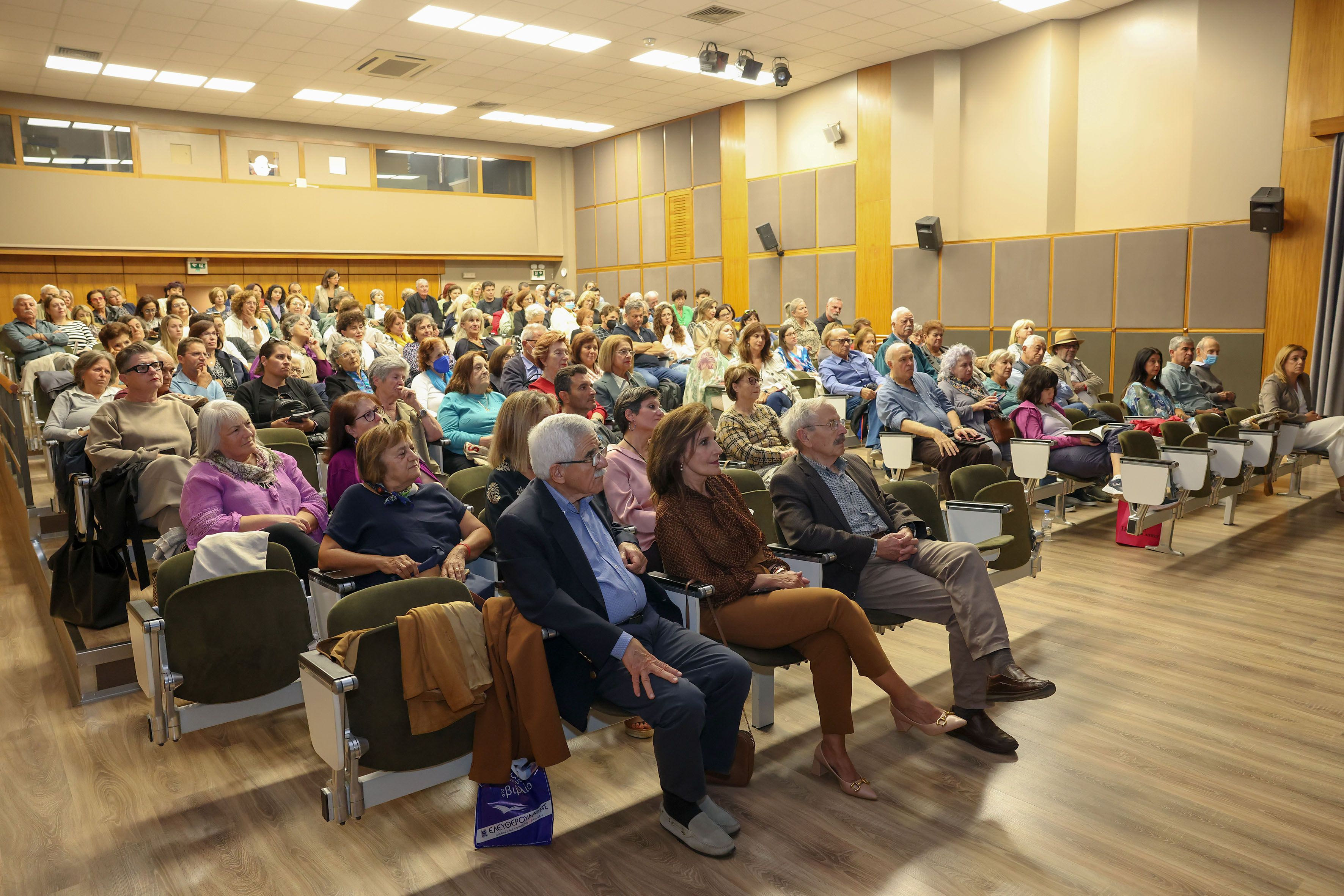 Στην κατάμεστη αίθουσα “Μανώλης Καρέλλης” (Ανδρόγεω δημοτικό μέγαρο) πραγματοποιήθηκε το απόγευμα της Πέμπτης η εκδήλωση -αφιέρωμα στη διακεκριμένη συγγραφέα κ. Ρέα Γαλανάκη με αφορμή την απονομή του μεγάλου βραβείου Γραμμάτων 2024 για τη συνολική της προσφορά στα Γράμματα.