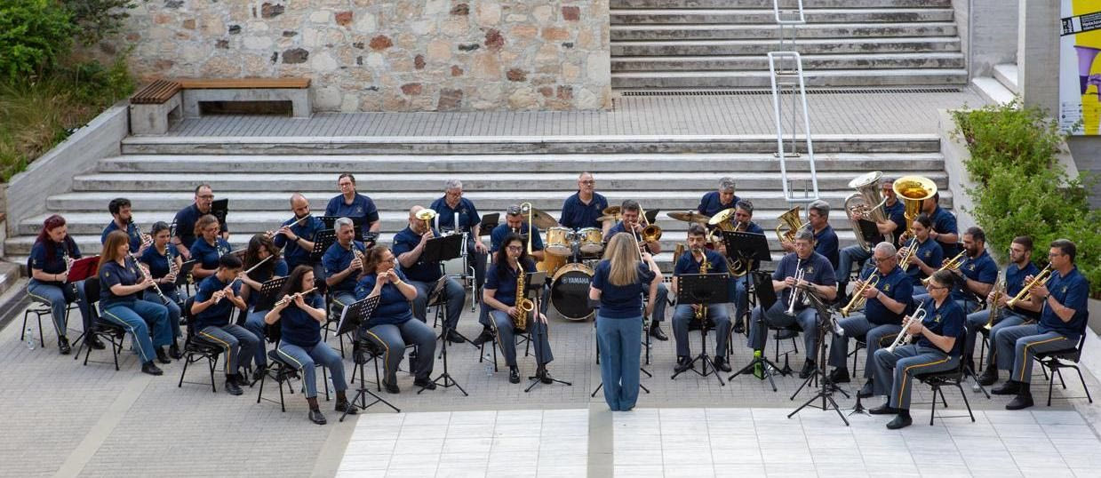 Η Φιλαρμονική Ορχήστρα του Δήμου Ηρακλείου, υπό τη διεύθυνση της αρχιμουσικού Δέσποινας Σκανδαλάκη, δίνει το σύνθημα έναρξης του Φεστιβάλ, φτάνει στην πλατεία Ελευθερίας και σκορπά γύρω της νότες χαράς.
