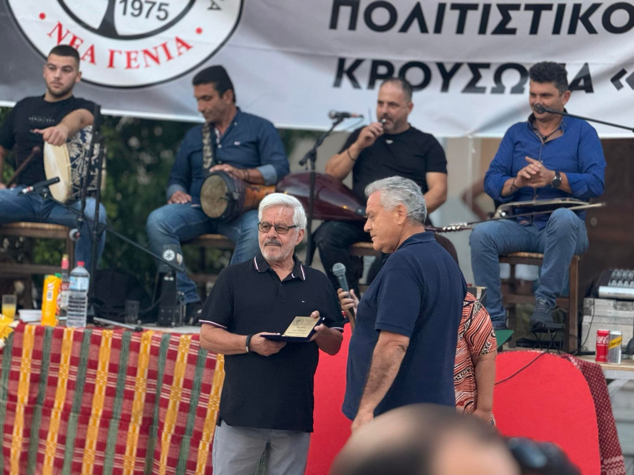 Σε μια γιορτή που τα είχε όλα, μέχρι και βροχή, συγκινητικές ήταν και οι στιγμές βράβευσης δύο ξεχωριστών Κρουσανιωτών, του γνωστού καθηγητή πληροφορικής του Οικονομικού Πανεπιστημίου Αθηνών Μανώλη Γιαννακουδάκη και του Λευτέρη Παραχεράκη που δραστηριοποιείται με εξαιρετική επιτυχία στον Καναδά.