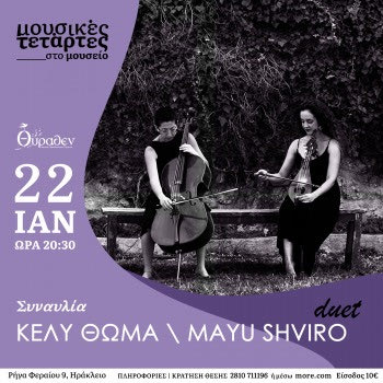 Την Τετάρτη 22 Ιανουαρίου η Κέλυ Θωμά & Mayu Shviro στις 20:30, θα πραγματοποιήσουν συναυλία στο μουσείο Θύραθεν.