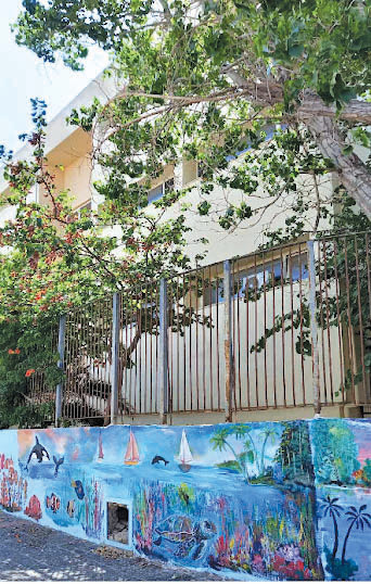 Ο λόγος για τον κ. Μιχάλη Μαραβέλια, συνταξιούχο (μέλος του ΚΑΠΗ που στεγάζεται απέναντι από το σχολείο) και καλλιτέχνη, που με δική του πρωτοβουλία παρέκαμψε τις αγκυλώσεις της γραφειοκρατίας και κατάφερε να εξασφαλίσει κάποια χρώματα από τις τεχνικές υπηρεσίες του Δήμου και να ξεκινήσει με όρεξη και μεράκι το έργο «εξωραϊσμού» μέρους της εξωτερικής πλευράς του σχολείου.
