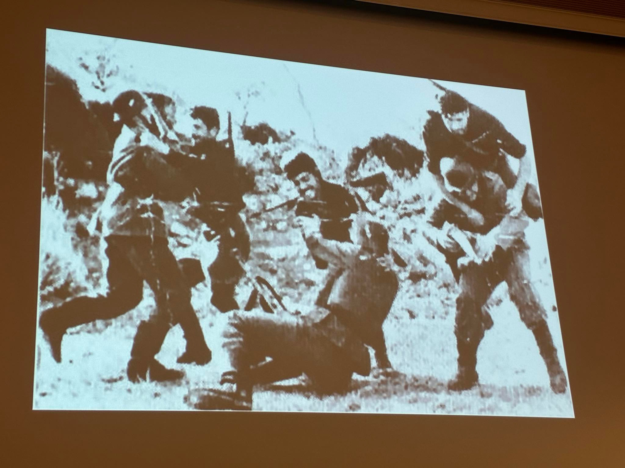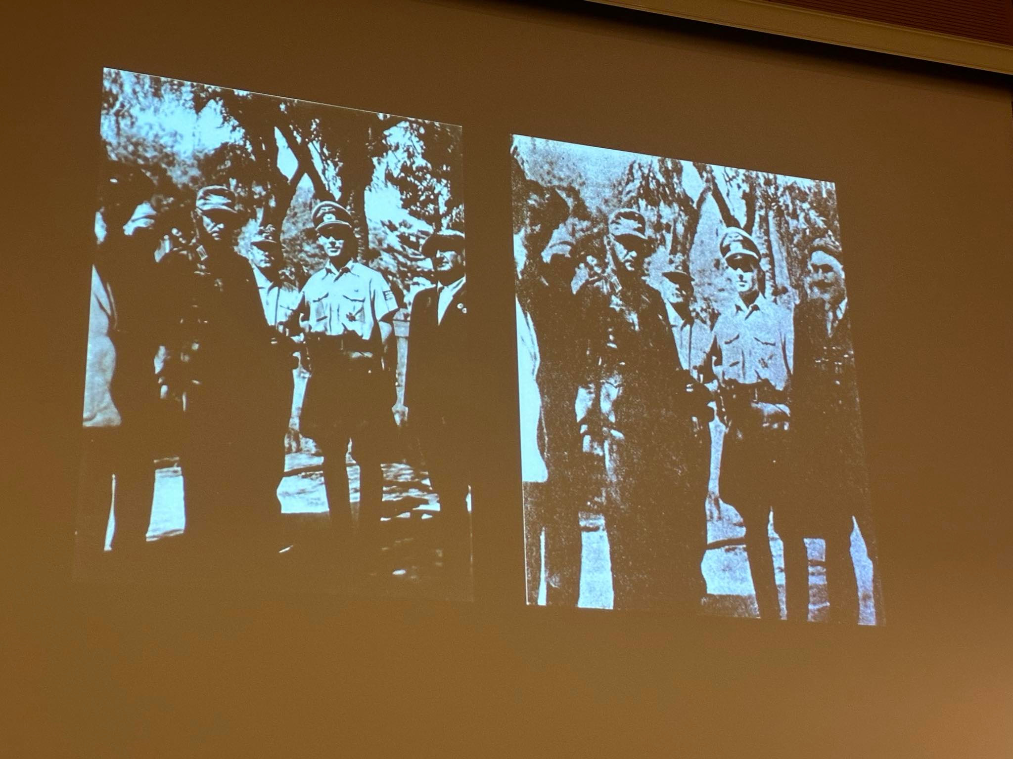 Στην ομιλία παρουσιάστηκε σπάνιο φωτογραφικό υλικό (216 φωτογραφίες) και μονταρισμένες, στρεβλωμένες και προπαγανδιστικές φωτογραφίες, που εξυπηρέτησαν σκοπιμότητες της εποχής εκείνης, καθώς και των μεταπολεμικών χρόνων.