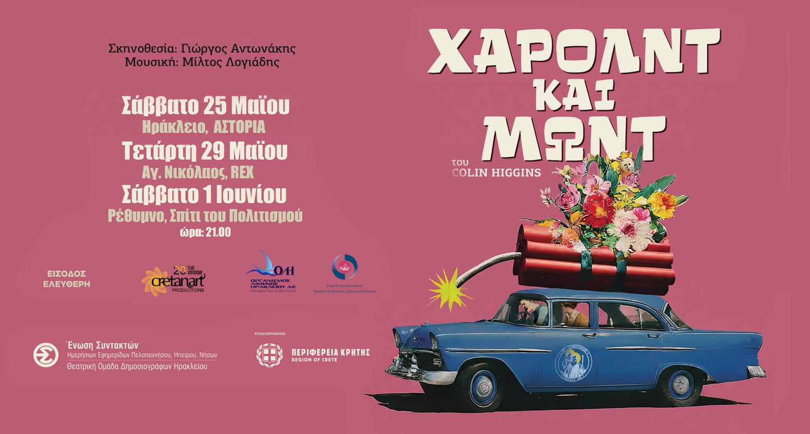 Η Θεατρική Ομάδα των Δημοσιογράφων Ηρακλείου της ΕΣΗΕΠΗΝ, σε συνδιοργάνωση με την Περιφέρεια Κρήτης, παρουσιάζει το αριστουργηματικό έργο του Κόλιν Χίγγινς «Χάρολντ και Μωντ» σε σκηνοθεσία Γιώργου Αντωνάκη.