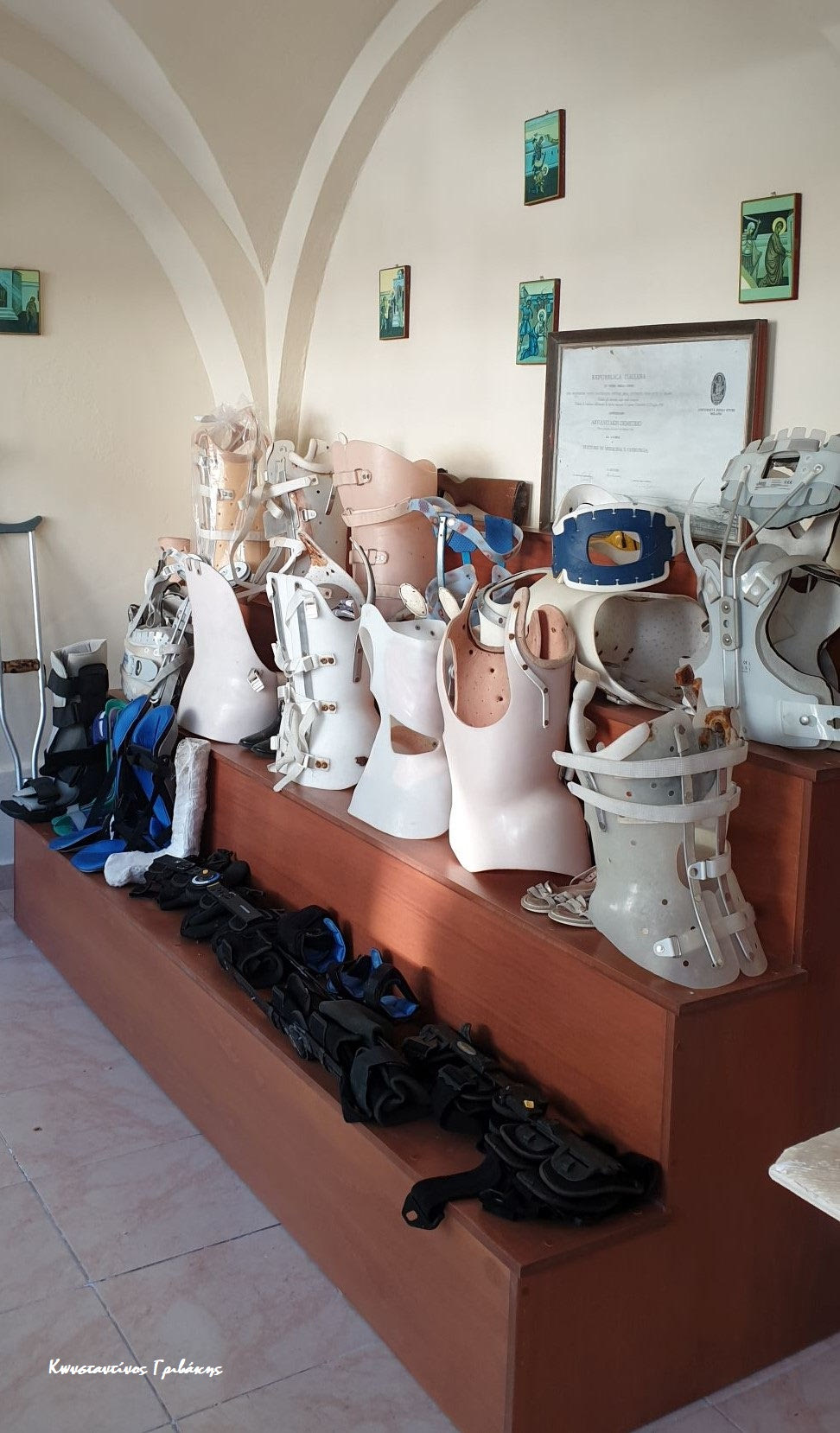 Δέος για όλες τούτες τις ιστορίες, καπνός από λιβάνι και κερί παντού μέσα στη μικρή εκκλησία, τάματα γεμάτη η εικόνα, και γύρω και παντού πατερίτσες και μπαστούνια. Κι ύστερα πήγαμε να πάρουμε το άγιασμα που έδιναν σε μικρά μπουκαλάκια και λέγανε πως ήταν επίσης θαυματουργό.