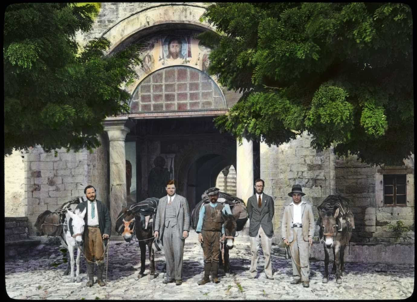 Το ταξίδι στην Ελλάδα από τους περιηγητές – ταξιδιώτες που συνέλλεξαν όλο αυτό το υλικό, πραγματοποιήθηκε το φθινόπωρο του 1929. Η ομάδα αποτελούνταν από τον Ρώσο εμιγκρέ, ζωγράφο, εξερευνητή -με ιδιαίτερα επικοινωνιακά χαρίσματα- Vladimir «Vovo» Perfilieff, τον φωτογράφο, ταλαντούχο κινηματογραφιστή και μετέπειτα βραβευμένο με Όσκαρ Floyd Crosby, και τον αρχιτέκτονα και απόφοιτο του Πανεπιστημίου του Princeton Gordon McCormick. Τους τρεις περιηγητές συνόδευε o νεαρός Αναστάσιος Χατζημήτσος, διερμηνέας από την Θεσσαλονίκη. Κύριος προορισμός της αποστολής τους ήταν το Άγιον Όρος, ενώ σκοπός του ταξιδιού τους ήταν η φωτογράφιση και κινηματογράφηση κάλυψη ενός τόπου μοναδικού, μυστηριώδους και αναλλοίωτου στον χρόνο.