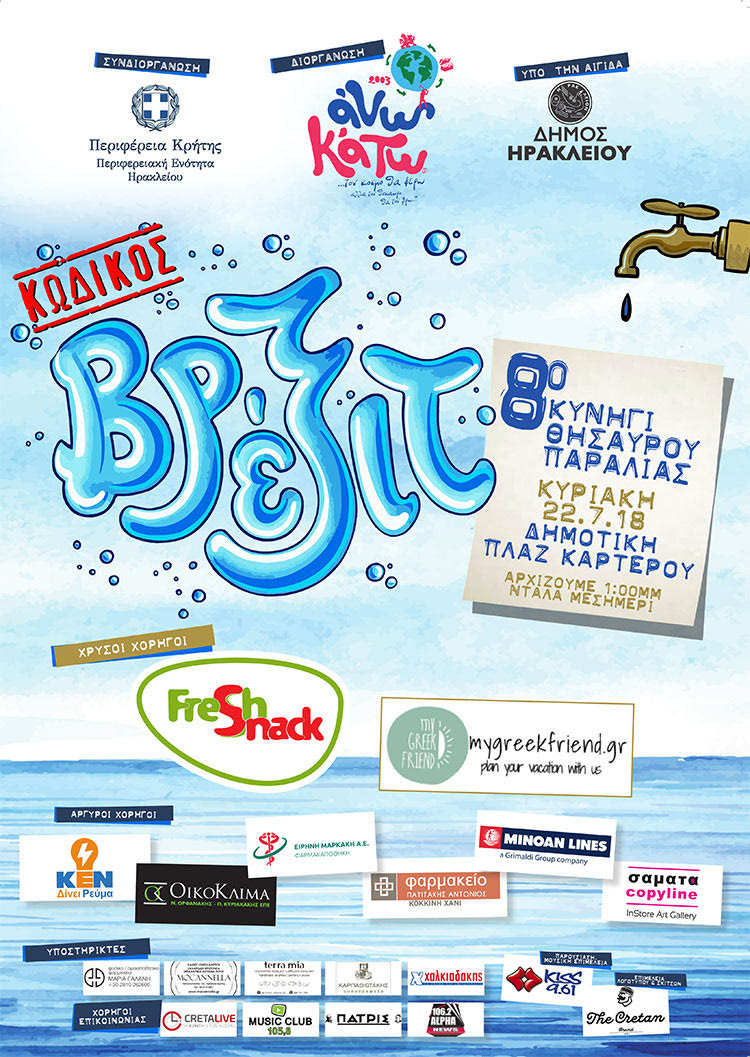 Η διοργάνωση του 8ου Κυνηγιού Κρυμμένου Θησαυρού Παραλίας πραγματοποιείται με την υποστήριξη των Χρυσών Χορηγών, My Greek Friend, Fresh Snack, των Αργυρών Χορηγών, ΚΕΝ, Φαρμακείο Πατιτάκης (Κοκκίνη Χάνι), Φαρμακαποθήκη Μαρκάκη Ειρήνη, Minoan Lines, Οικοκλίμα και Copyline Σαματά αλλά και των υποστηρικτών S/M Χαλκιαδάκης, Terra Mia, Φαρμακείο Μαρία Γαλάνη, Mocanella και Τυπογραφείο Καρπαθιωτάκη.