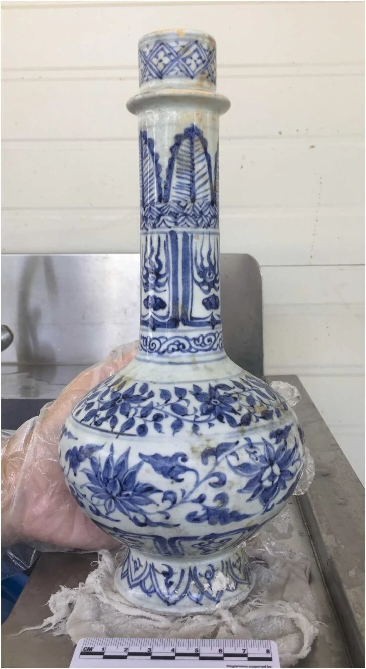 Το σύνολο των ευρημάτων περιλαμβάνει το μεγαλύτερο τεκμηριωμένο φορτίο μπλε και λευκής πορσελάνης της δυναστείας Γιουάν που έχει ανακτηθεί ποτέ από ελεγχόμενη ανασκαφή ναυαγίου. Συνολικά, ανασύρθηκαν περίπου 136 κιλά μπλε και λευκών κεραμικών —περισσότερα από 2.350 θραύσματα.