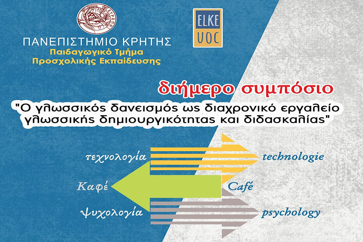 Συμπόσιο με θέμα «Ο γλωσσικός δανεισμός ως διαχρονικό εργαλείο γλωσσικής δημιουργικότητας και διδασκαλίας» διοργανώνει το Παιδαγωγικό Τμήμα Προσχολικής Εκπαίδευσης του Πανεπιστημίου Κρήτης, στις 6:30 το απόγευμα, στην Πανεπιστημιούπολη του Γάλλου.
