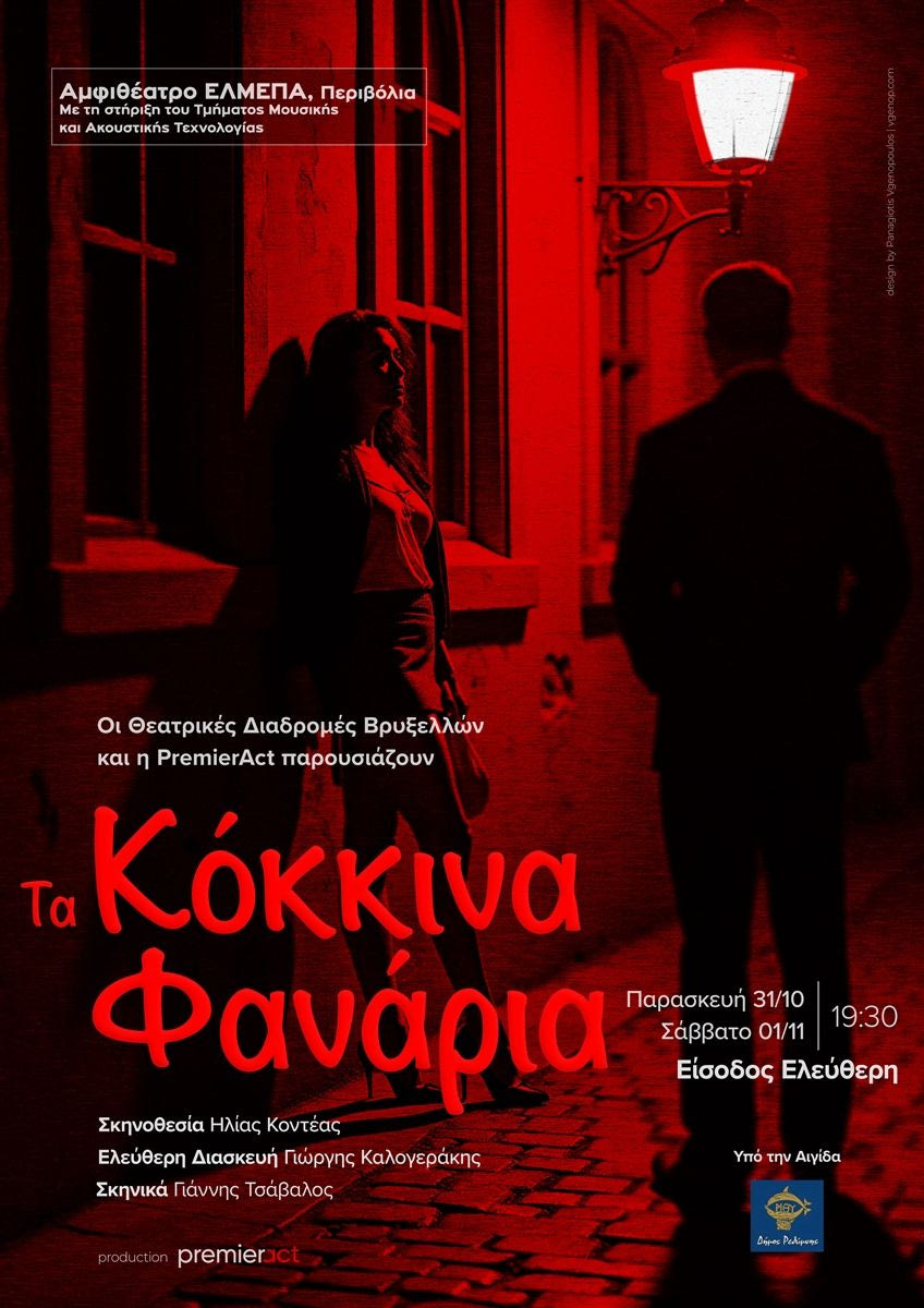 Το θεατρικό σχήμα ομογενών «Θεατρικές Διαδρομές Βρυξελλών», που εδρεύει στις Βρυξέλλες, παρουσιάζει υπό την αιγίδα του Δήμου Ρεθύμνης το έργο «Τα Κόκκινα Φανάρια», στις 7:30 το απόγευμα, στο Αμφιθέατρο του ΕΛΜΕΠΑ στα Περιβόλια.