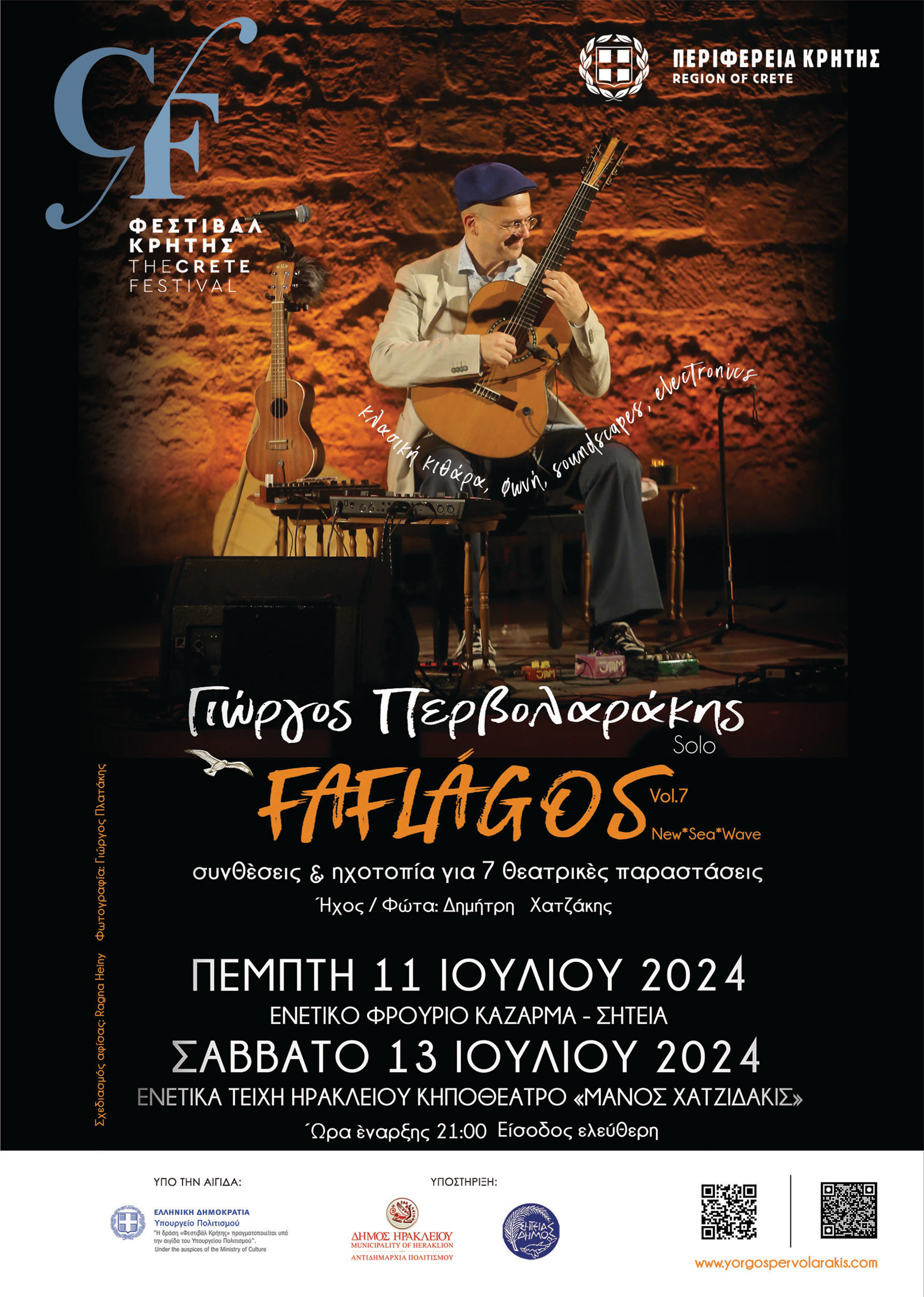 Συγκεκριμένα στο Ενετικό φρούριο Καζάρμα Σητείας στις 11 Ιουλίου, θα δοθεί συναυλία: «Γιώργος Περβολαράκης solo – FAFLAGOS- New*Sea*Wave vol.7 » _συνθέσεις & ηχοτοπία για 7 θεατρικές παραστάσεις, σε συνδιοργάνωση με την Εφορεία Αρχαιοτήτων Λασιθίου και την υποστήριξη του Δήμου Σητείας.