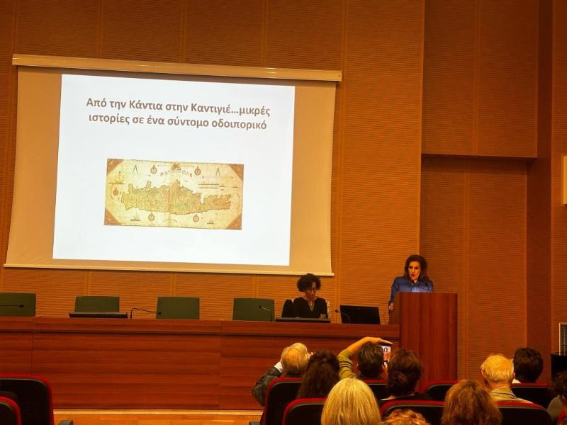 Ενθουσίασε το κοινό η ομιλία με θέμα «Από την Κάντια στην Καντιγιέ… μικρές ιστορίες σε ένα σύντομο οδοιπορικό…» από την αρχαιολόγο του Δήμου Ηρακλείου Κάλλια Νικολιδάκη στην κατάμεστη αίθουσα «Θεοτοκόπουλος» της Βικελαίας Δημοτικής Βιβλιοθήκης.