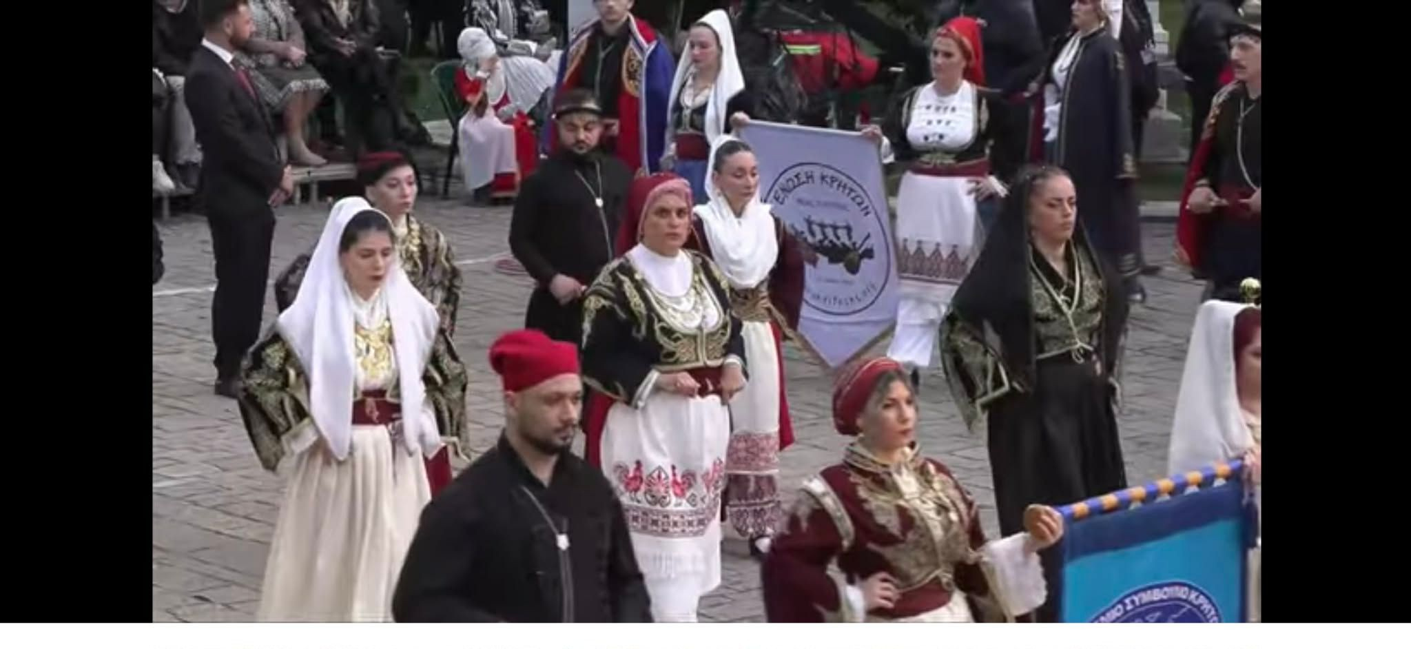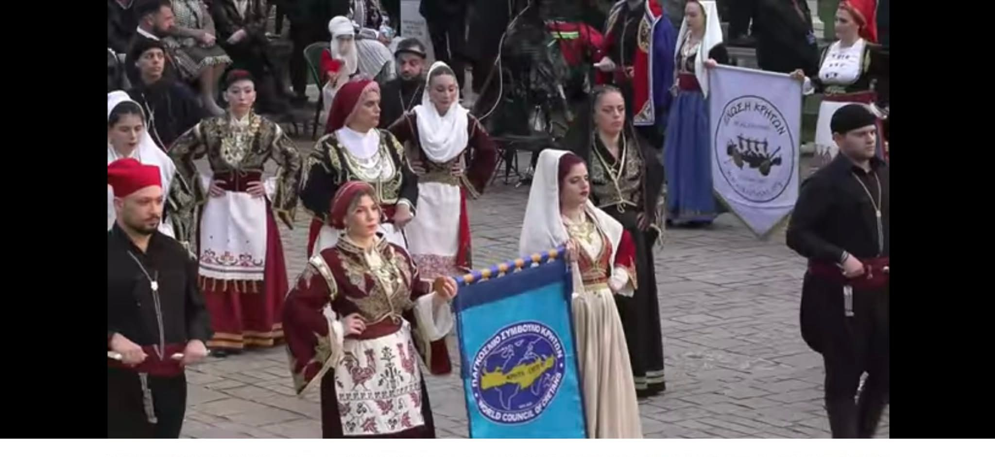 Μέλη του Συμβουλίου παρήλασαν με παραδοσιακές Κρητικές φορεσιές στη μεγάλη βραδινή πομπή του Σαββάτου και μαζί με Κρητικούς Συλλόγου από ολόκληρη τη χώρα απέτισαν φόρο τιμής στους αθάνατους ήρωες της Εξόδου.