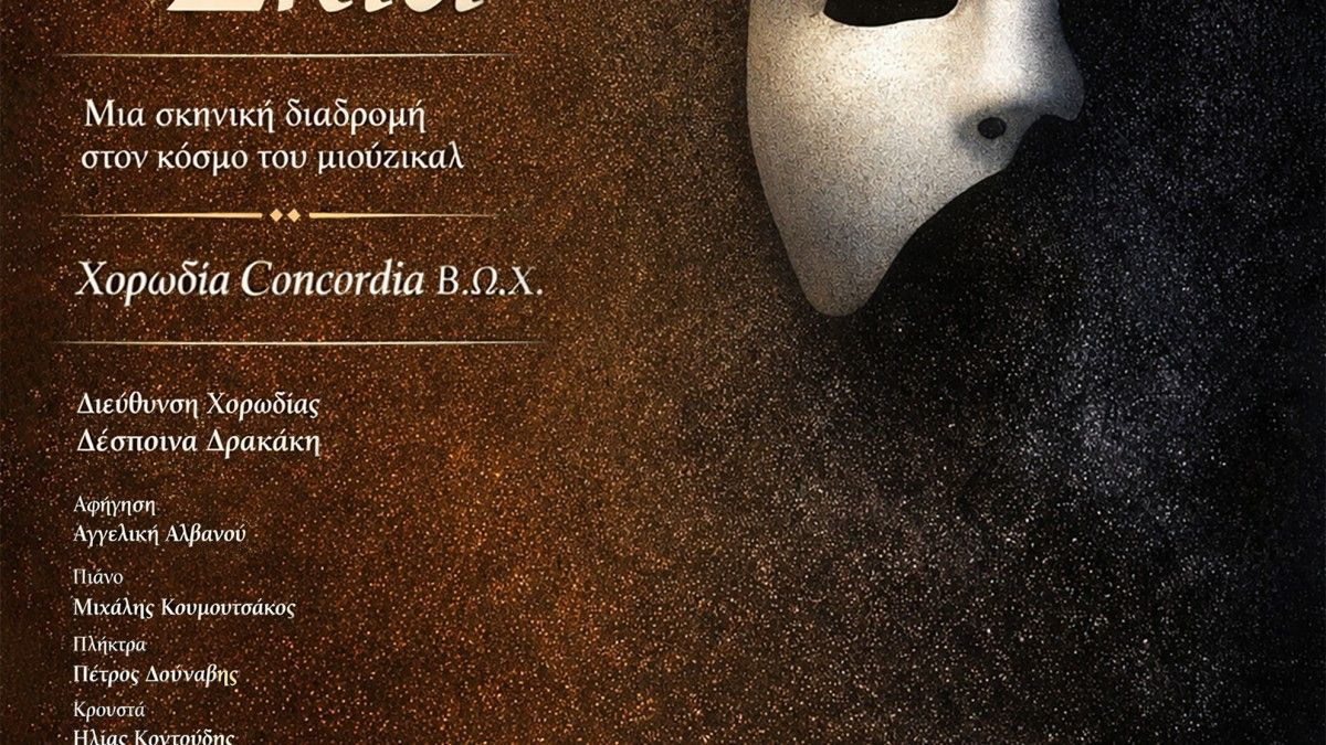 Η Μικτή Χορωδία Concordia Β.Ω.Χ. παρουσιάζει τη συναυλία «Από το φως στη σκιά», ένα αφηγηματικό μουσικό ταξίδι στον κόσμο του μιούζικαλ. Η παράσταση ξεδιπλώνει μια σκηνική διαδρομή μέσα από δυναμικά medleys βασισμένα σε τρία εμβληματικά μιούζικαλ του παγκόσμιου ρεπερτορίου: το The Lion King, το Les Misérables και το The Phantom of the Opera. Με αφήγηση που συνδέει τις ιστορίες και τη μουσική αυτών των έργων, η παράσταση οδηγεί το κοινό σε μια πορεία από το φως… στη σκιά.