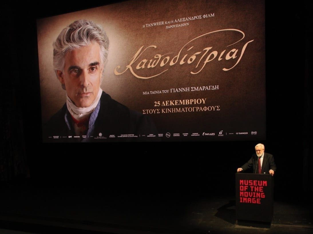 Η Παγκόσμια Πρεμιέρα της ταινίας «Καποδίστριας» του Γιάννη Σμαραγδή πραγματοποιήθηκε το Σάββατο 29 Νοεμβρίου στην αίθουσα προβολών του Museum of the Moving Image στη Νέα Υόρκη, παρουσία του σκηνοθέτη, της κας Ναταλίας Καποδίστρια, απογόνου του Ιωάννη Καποδίστρια, και του κ. Μίνω Μάτσα, που επιμελήθηκε της μουσική της ταινίας.