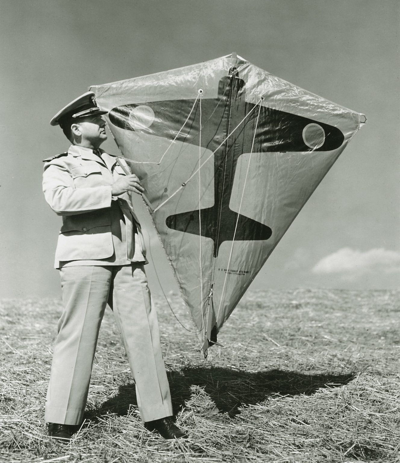 Ο Paul E. Garber κρατά τον χαρταετό-στόχο Mark I που σχεδίασε για την εξάσκηση αντιαεροπορικών συστημάτων σε πλοία όταν ήταν διοικητής του Πολεμικού Ναυτικού. Πηγή: History Net
