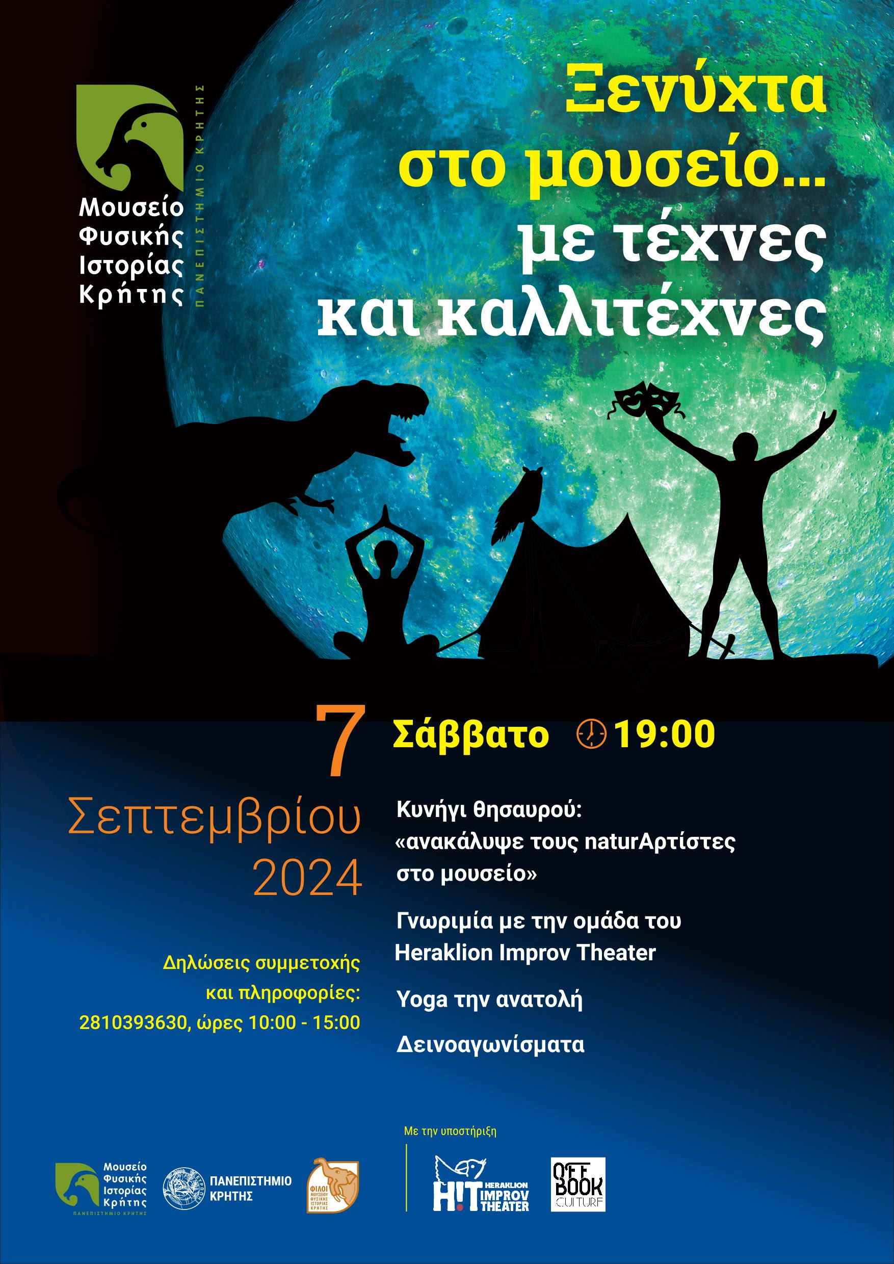 Το βράδυ του Σαββάτου 7 Σεπτεμβρίου 2024 και ώρα 19:00 σας περιμένουμε να κατασκηνώσουμε, να παίξουμε, να διασκεδάσουμε και φυσικά να κοιμηθούμε στους εκθεσιακούς χώρους του Μουσείου Φυσικής Ιστορίας Κρήτης!