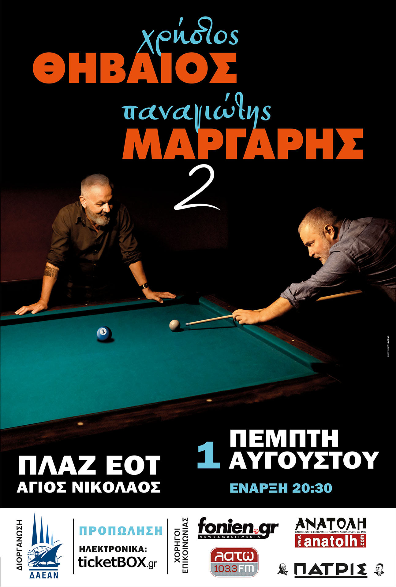 Οι « 2» τους πια επί σκηνής και μετά από μια σειρά πολύ πετυχημένων εμφανίσεων σε όλη την Ελλάδα, συναντιούνται και στον Άγιο Νικόλαο.