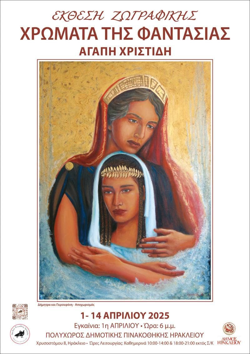 Η έκθεση ζωγραφικής της Αγάπης Χριστίδη με τίτλο «Χρώματα της Φαντασίας» θα ανοίξει τις πύλες της στη γκαλερί του Πολυχώρου της Δημοτικής Πινακοθήκης Hρακλείου, την Τρίτη 1 Απριλίου.