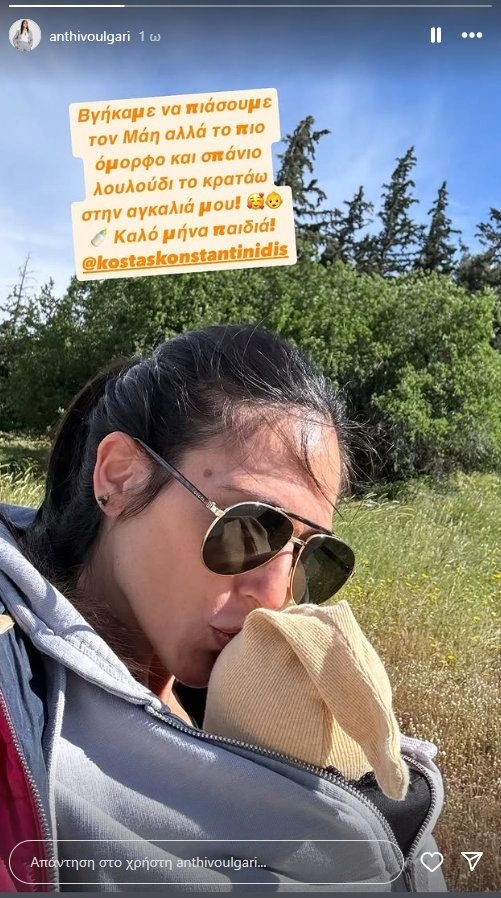 Η Ανθή Βούλγαρη έκανε Πρωτομαγιά αγκαλιά με τον γιο της που έφερε στον κόσμο το πρώτο της παιδί στις 12 Μαρτίου.