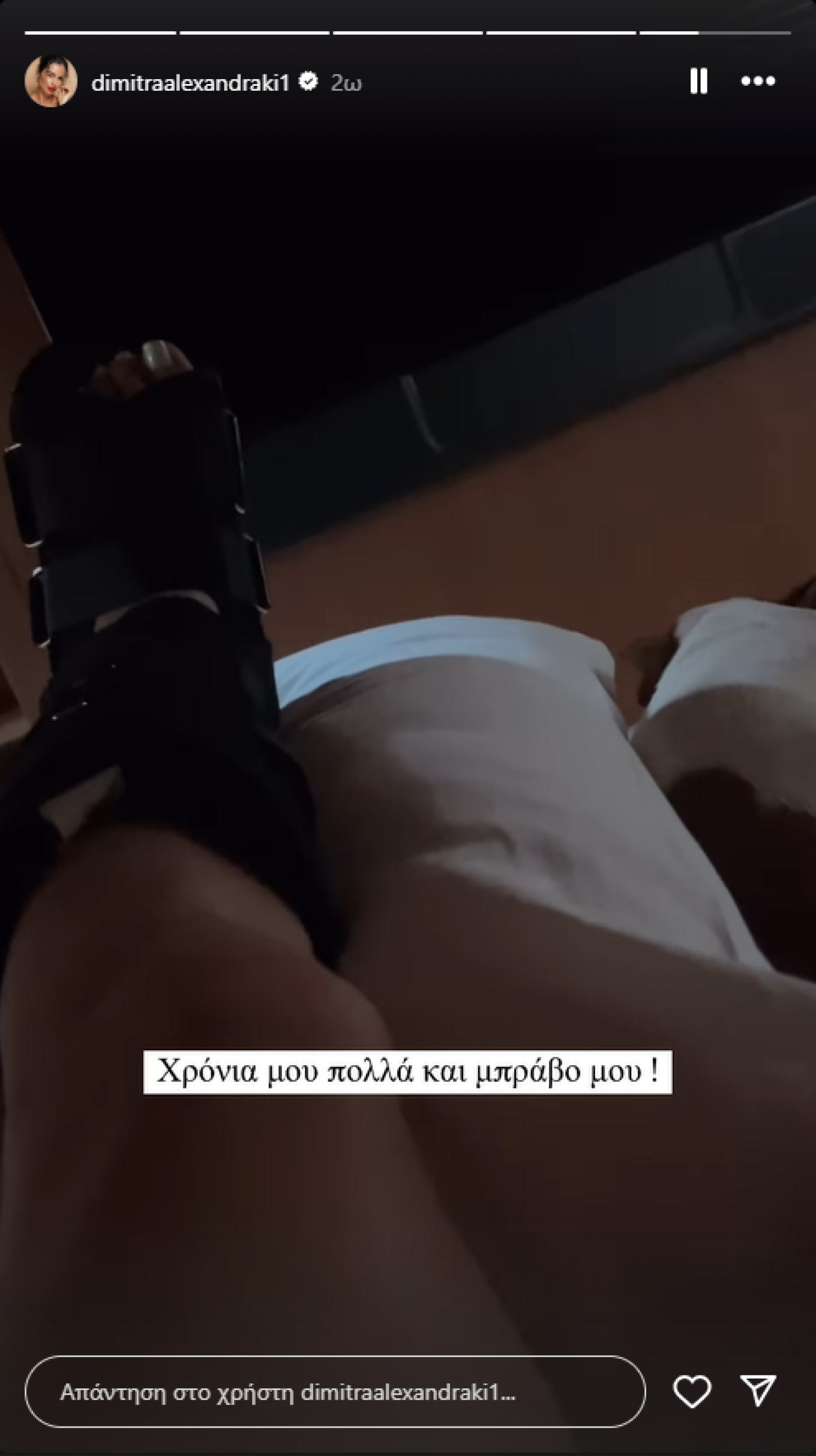 Σε δεύτερο story που ανάρτησε και δείχνει το πόδι της δεμένο σε νάρθηκα, έγραψε: «Χρόνια μου πολλά και μπράβο μου».
