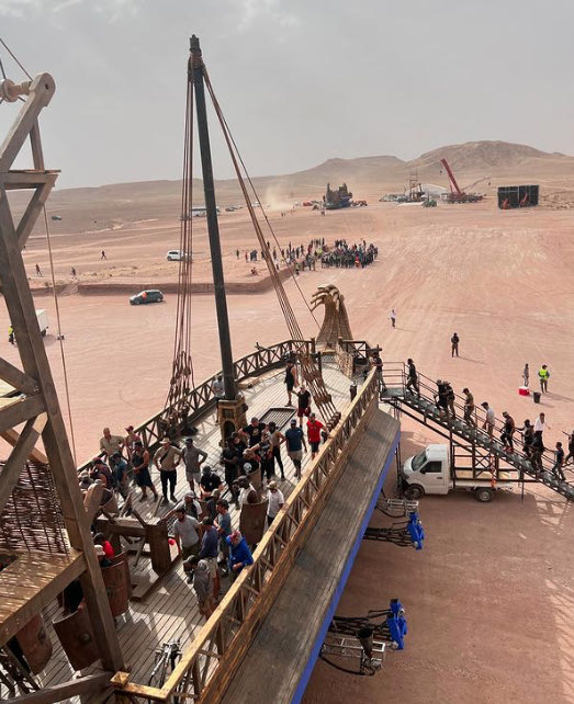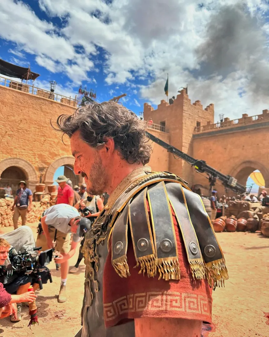Στον λογαριασμό του στο Instagram ο Πασκάλ μοιράστηκε διάφορα στιγμιότυπα από τα παρασκήνια των γυρισμάτων. Δεκάδες κομπάρσοι πάνω σε ένα αυτοσχέδιο κατάστρωμα πλοίου, μάχες με σπαθιά, μπάνια στη θάλασσα και στιγμές χαλάρωσης στην έρημο, αποτυπώνουν μερικές από τις φωτογραφίες που ανέβασε ο 49χρονος ηθοποιός.